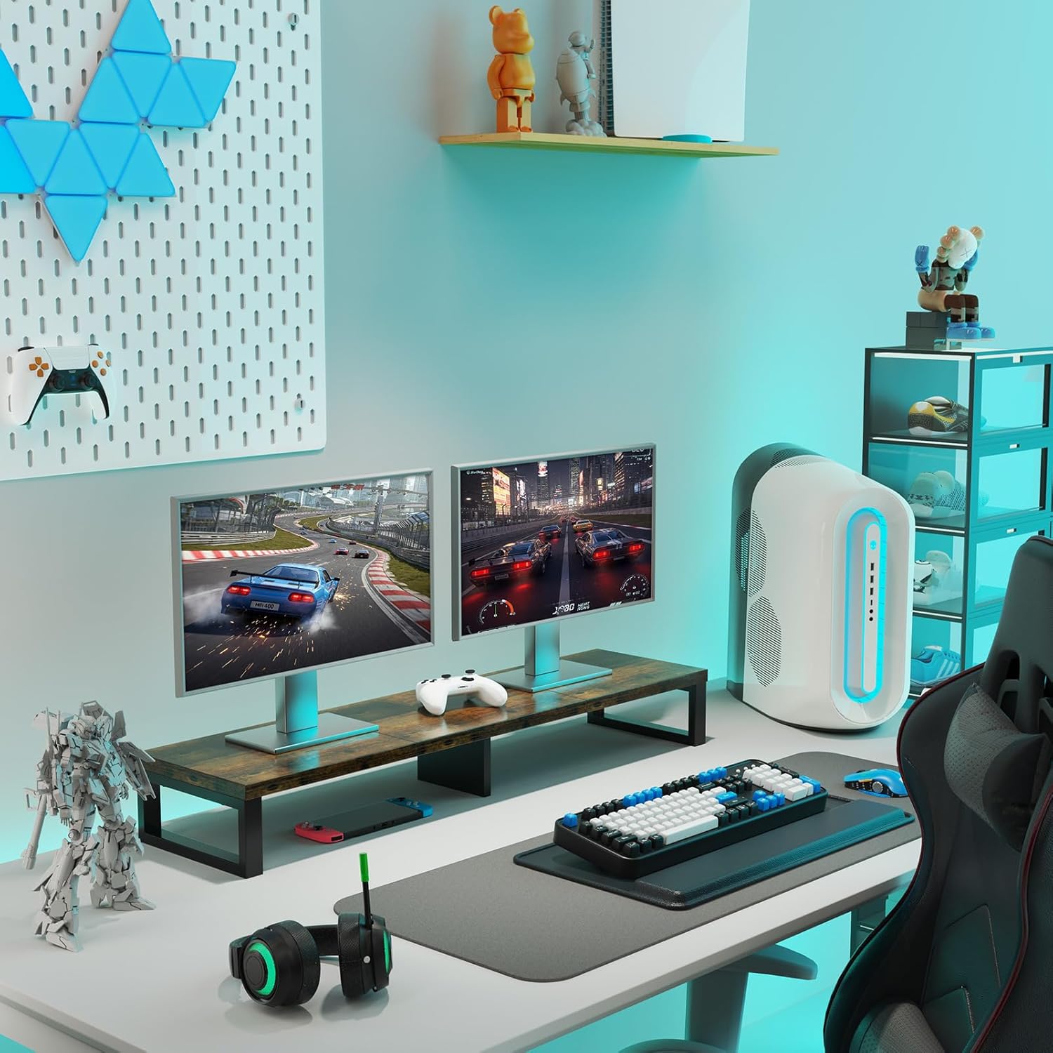 - Monitor Riser with 100lb Capacity: Built with reinforced steel legs and a 39.4" platform, this dual monitor stand doubles as a printer stand, laptop riser, or TV stand. Rock-solid stability meets versatile functionality.
