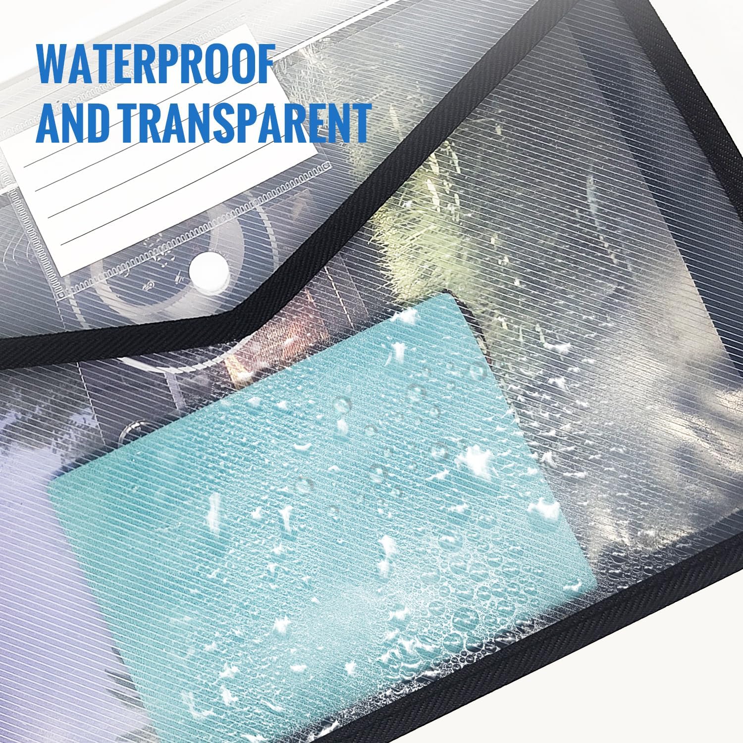 Plastic Expanding File Folder,Envelope Folders for Documents, File Folder Organizer Holder with Snap Closure,Waterproof Transparent File Folder,Large Capacity, Fit Letter/A4 Size (Black-6 Pack)