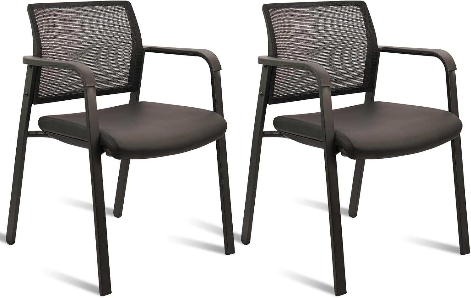 - 【COMFORTABLE SITTING FEEL】This black office chair features PVC leather seat cushion and breathable mesh backrest for durability. Premium foam padding provides soft and comfortable seating. Breathable mesh backrest keeps your back fresh. The leather seat cushion of this waiting room chair is easy to clean and water and stain resistant.