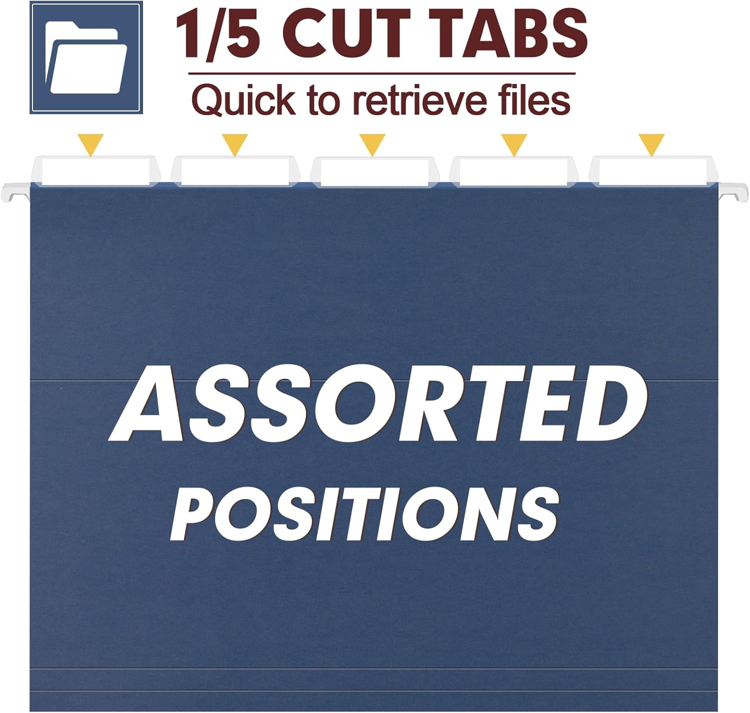 HERKKA Hanging File Folders, 60 Pack Reinforced Letter Size Hanging Folders, Designed for Bulky Files, Filing Cabinet, 1/5-Cut Adjustable Tabs (Blue)