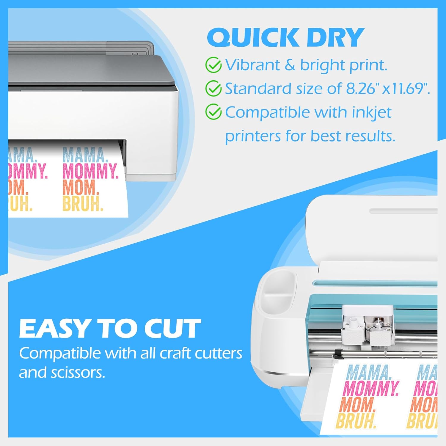 - Printer & Cutter Compatible โ This 56 Sheets/Pack A4 standard-sized (8.26" x 11.69") sticker paper for inkjet printer works seamlessly with inkjet printers and is compatible with all craft cutters. Itโs also easy to cut with scissors for added convenience, making it the perfect sticker paper for printer.