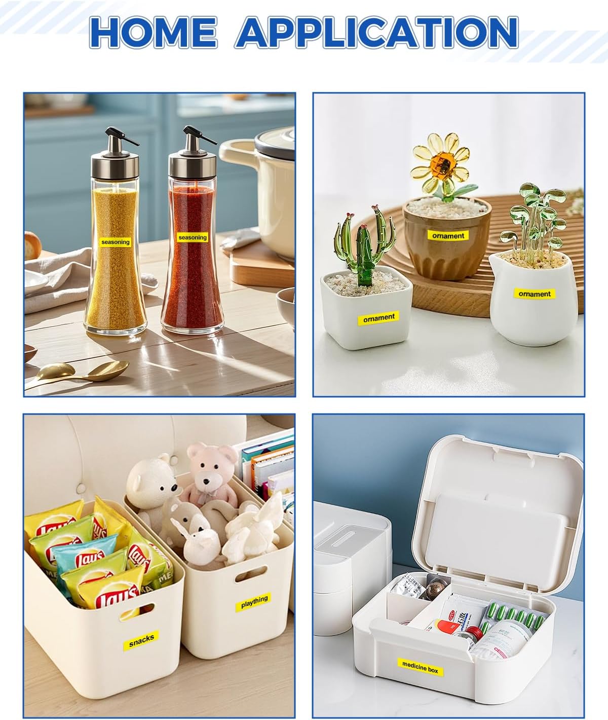 - Features: Our 12mm 0.47" yellow label maker tape split design makes the label tape easy to peel and apply, with strong adhesion/waterproof/temperature/oil/abrasion/fading, and reliably sticking to various surfaces