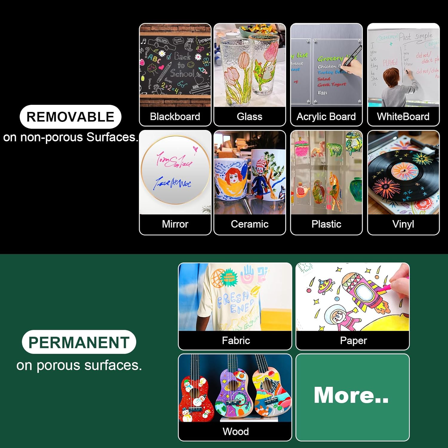 - Versatile. Best use on blackboards, chalkboard, dry erase board, glass, windows, plastic, ceramic and most nonporous surfaces.