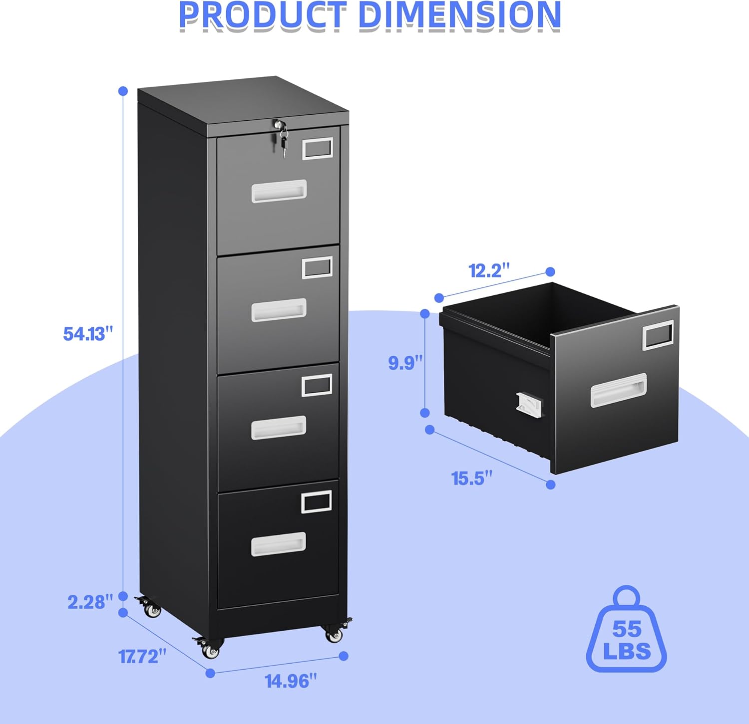 - [Heavy Duty Construction] 4 drawer file cabinet with lock black with high quality steel structure, this office file cabinet can serve as extra table for a printer or scanner