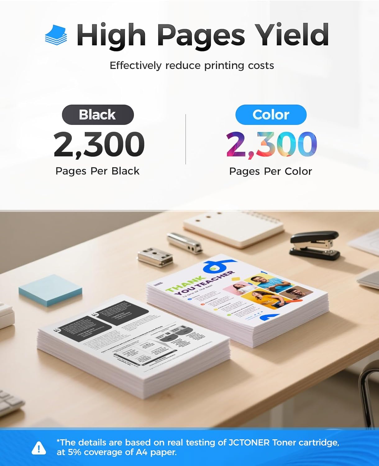 - High-Yield: up to 2,300 pages per 410A Black and 2,300 pages per 410A Color (Total 9,200 pages, 5% coverage).