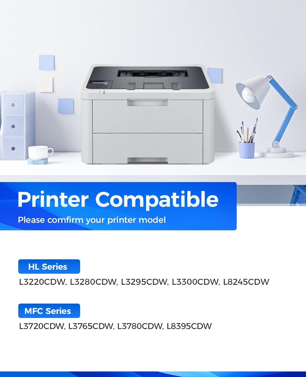 - Compatible Printers: Compatible with Brother HL-L3220CDW HL-L3280CDW HL-L3295CDW HL-L3300CDW HL-L8245CDW MFC-L3720CDW MFC-L3765CDW MFC-L3780CDW MFC-L8395CDW Laser Printer.