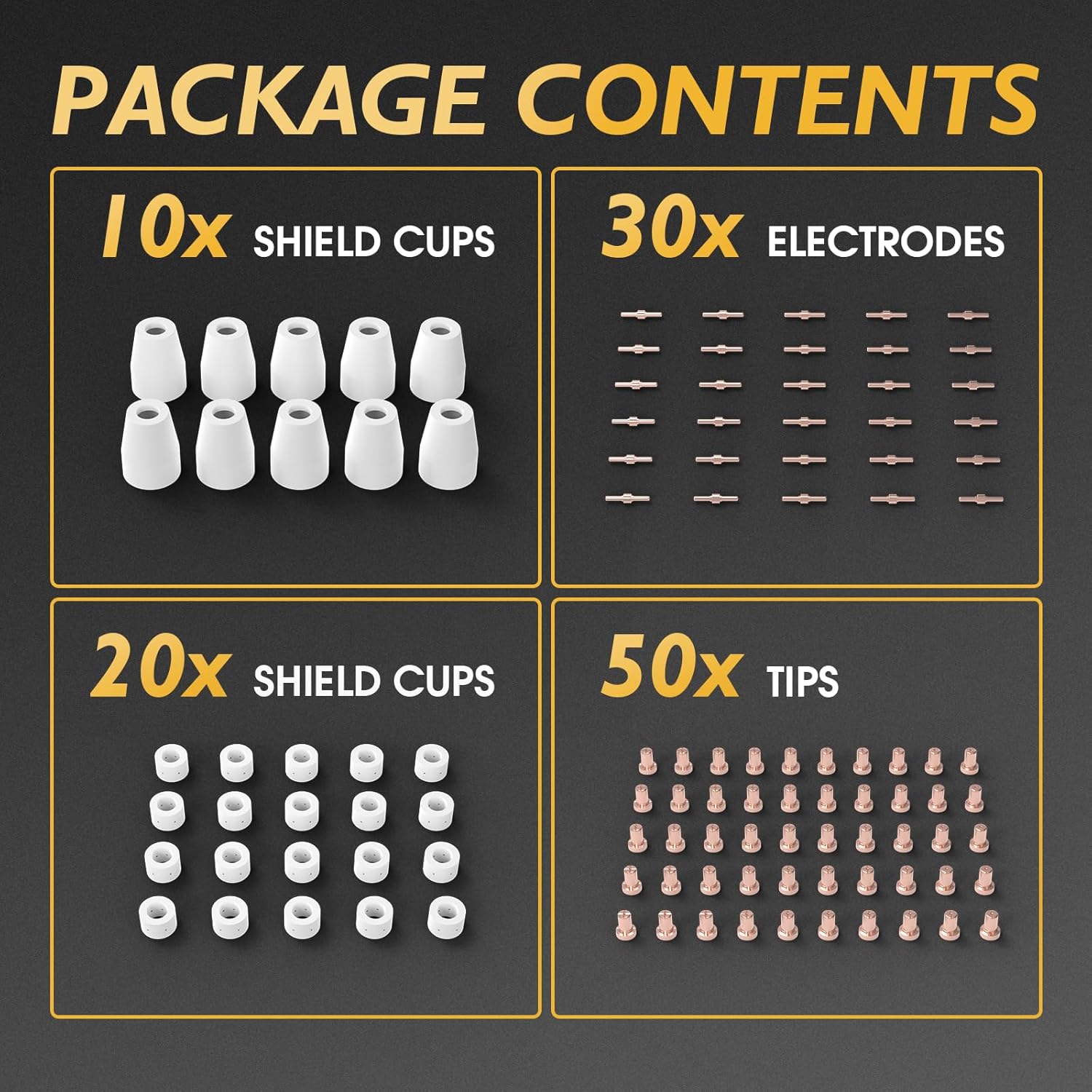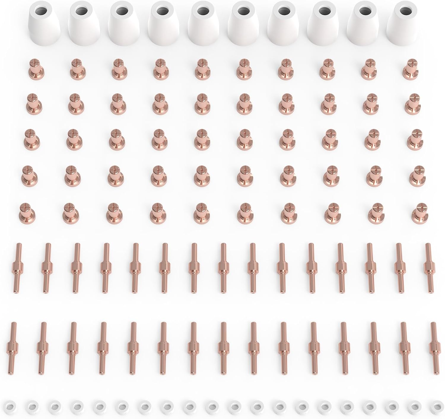 TOOLIOM 110Pcs Plasma Cutter Torch Consumables PT31 Electrode Nozzles Cups Kit Fit CUT40 CUT50 with Plasma Cutting Torch PT31 LG40
