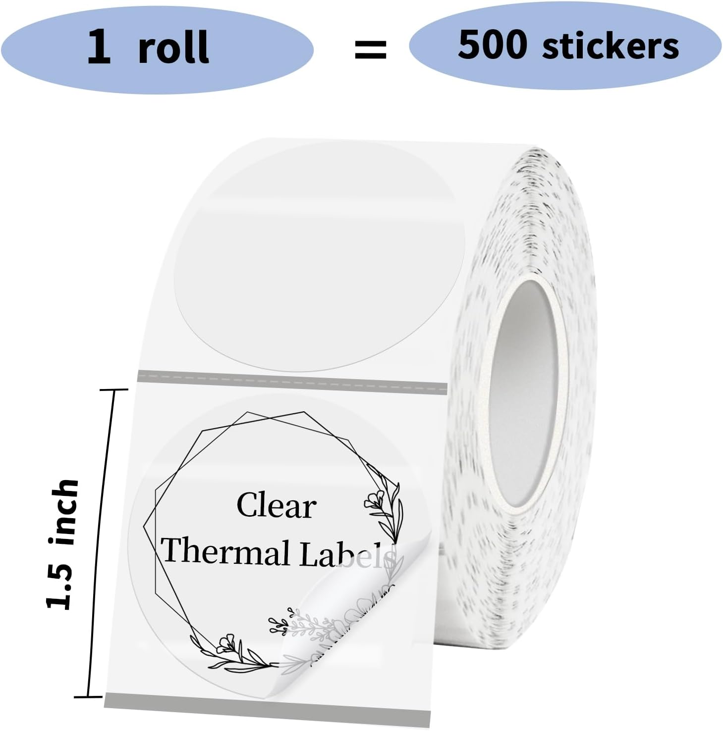 1.5" Transparent Thermal Label Stickers,Waterproof Thermal Printer Sticker Labels for Gift Wrapping, Self-Adhesive Name Price Tag DIY Custom Logo Design (500 pcs)