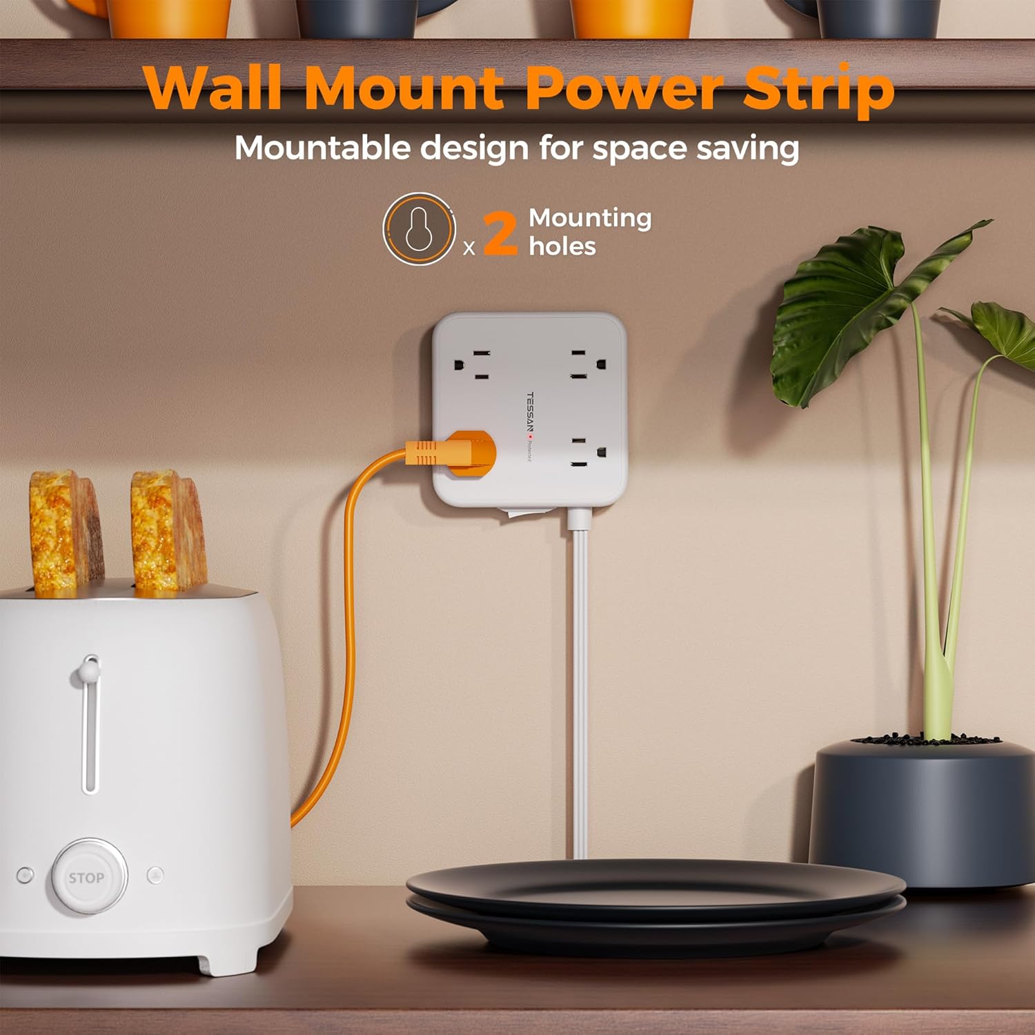 - 11 in 1 Power Strip: This mountable power strip can turn 1 socket into 8 AC outlets (1250W Max) and 3 USB ports, charge 11 devices simultaneously without blocking; Extension cord with multiple outlets suitable for various indoor spaces