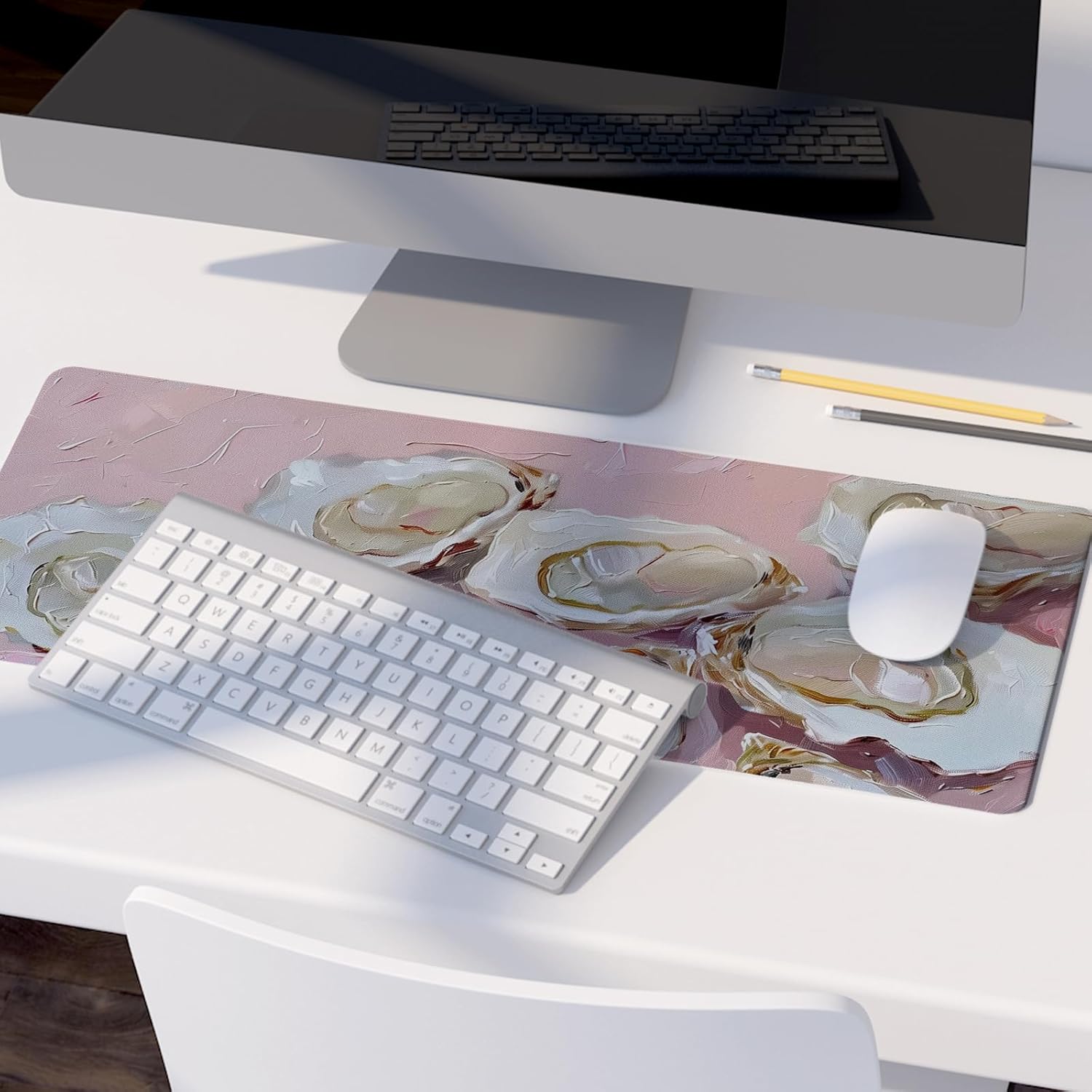 Pink Ocean Coastal Art Mouse Pad,Colorful Beachy Seashell Mouse Pad,XL Large Oyster Abstract Art Desk Mat,Girly Laptop Desk Mat,31.5x11.8 Inch