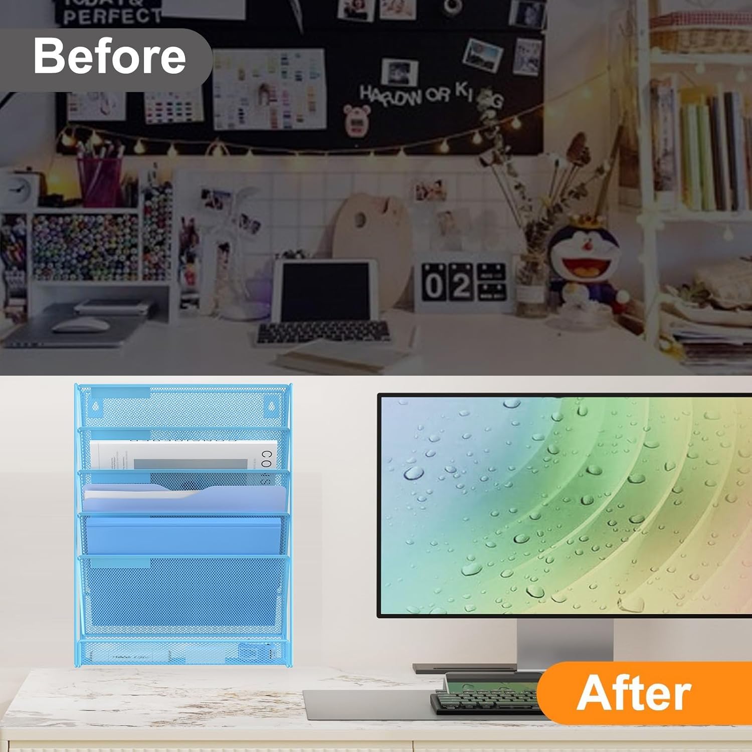 Kuntine.B Wall File Organizer Office Hanging Magazine Holder Wall File Organizer for Office Home (Blue, 6 Tier)