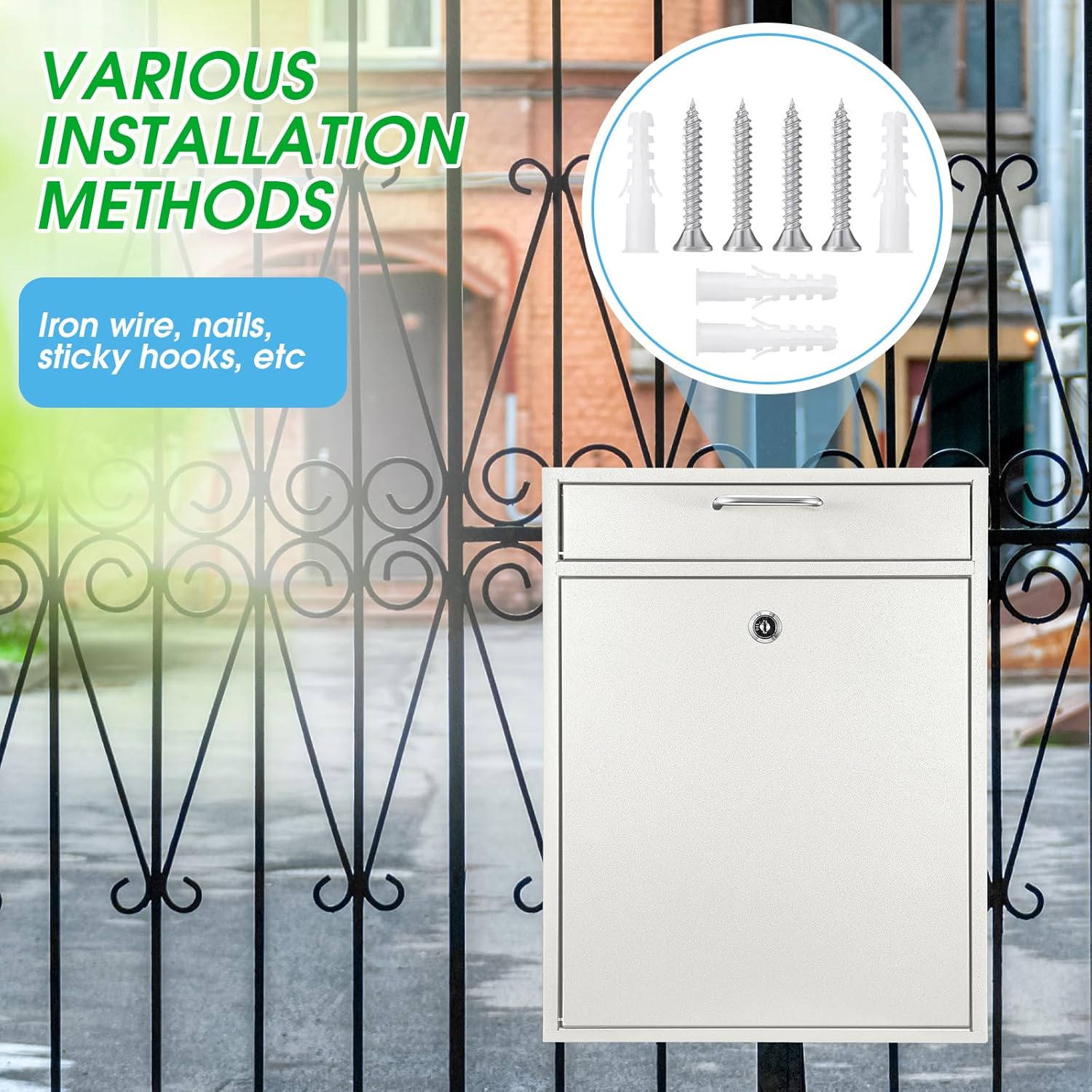 - Quality Material: crafted from quality metal material, this robust mail drop promises reliability; The wall mount mailbox is coated with plating which prevents peeling off paint and rust, extending the product's service life