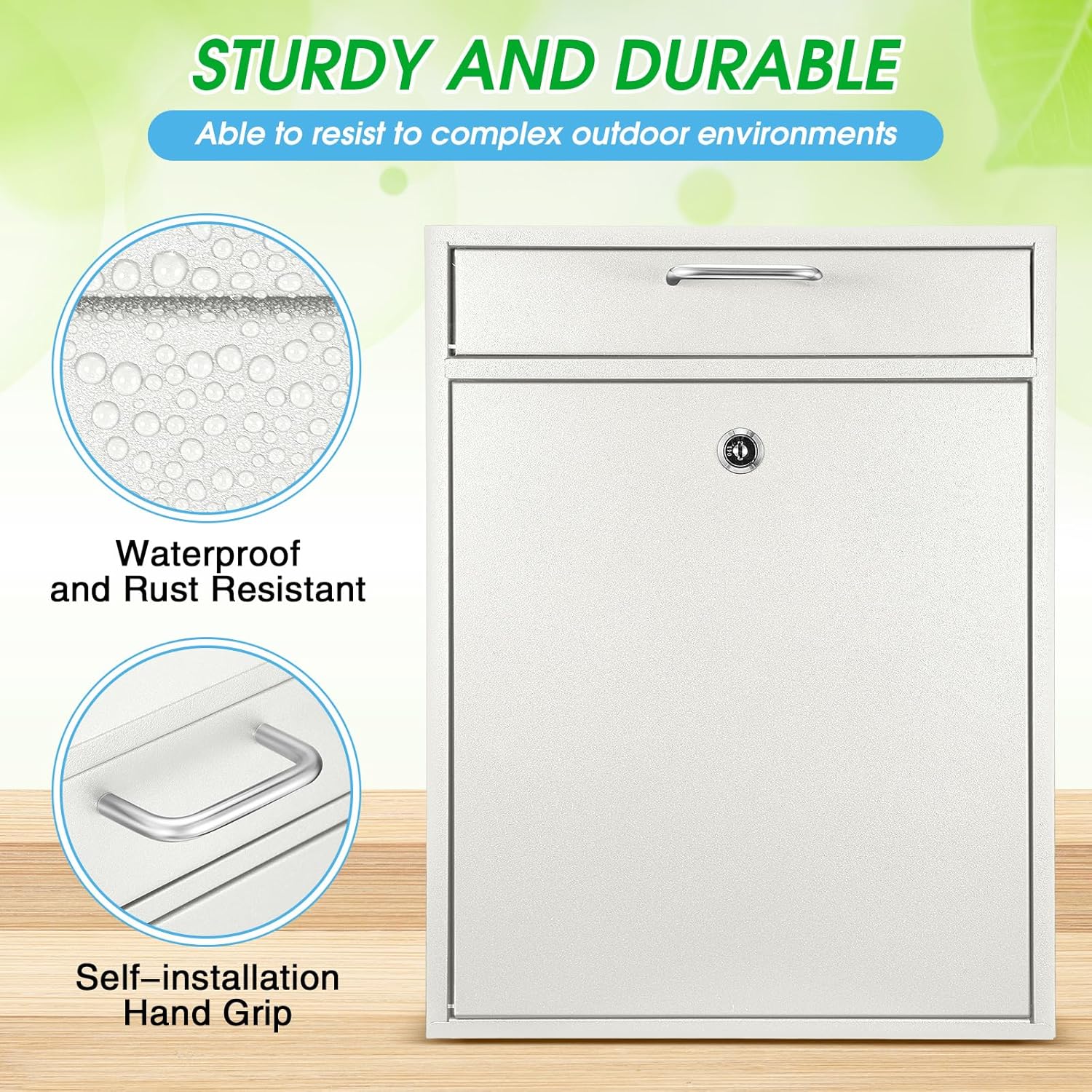 Locking Mailbox with Key for Outdoor 18 x 15 x 7 Inches Large Wall Mount Mail Box with Lock Security Mail Drop Metal Collection Boxes Hanging Secure Postbox(Creamy White)