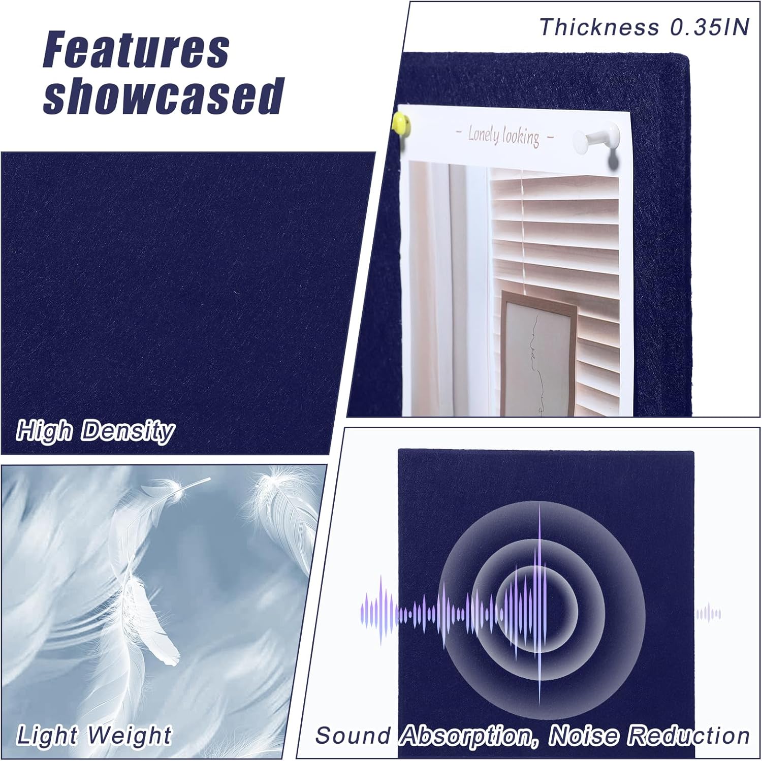 - 【Package Includes】You will receive 6 pack felt wall tiles and 1 box colorful thumbtacks (about 30pcs). The size of each felt wall tile is 11.8" x 11.8" and the thickness is about 0.35". You can splice them into the desired shape and size according to your needs, such as 36" x 24", 12" x 72", etc.