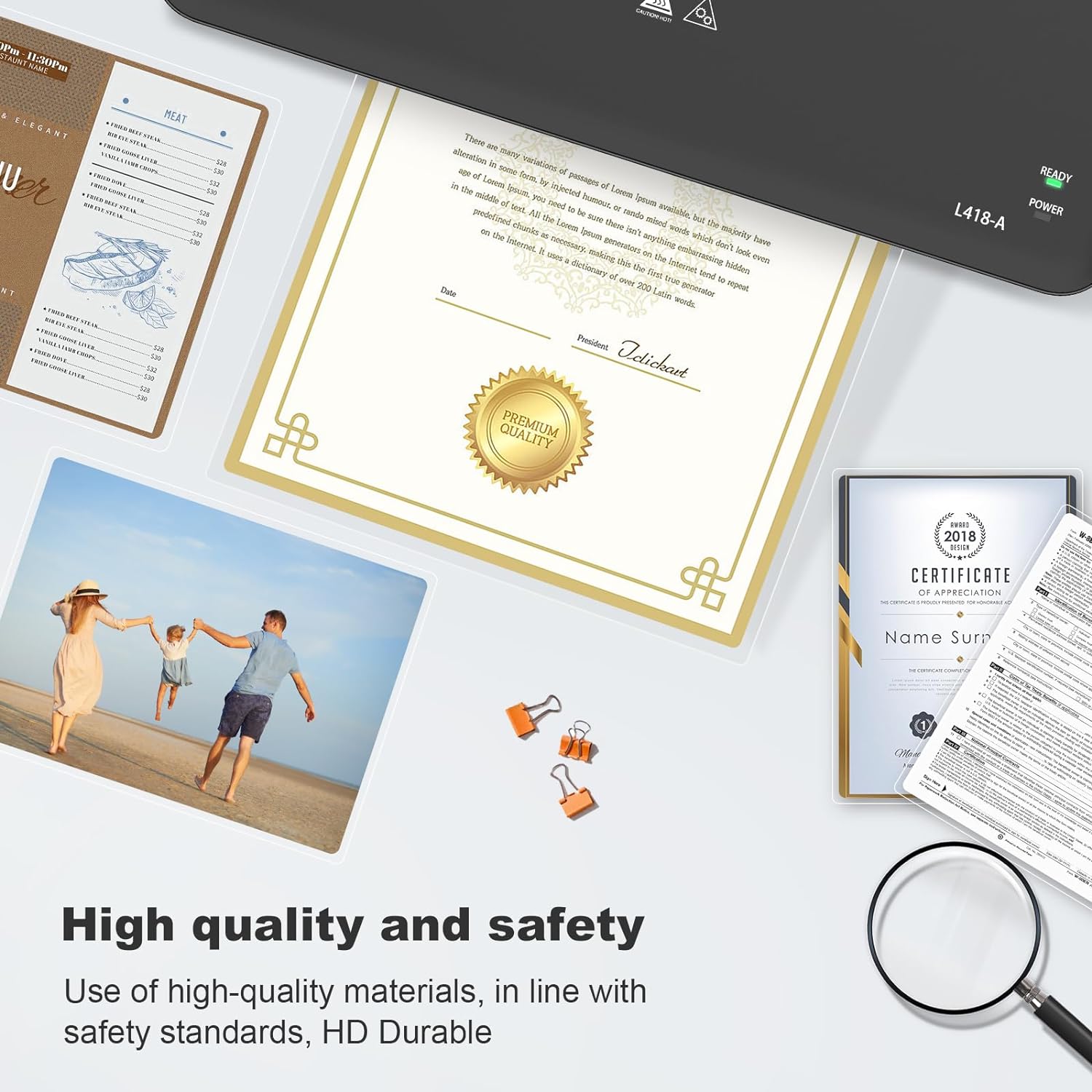 - [Reliable Protection] The laminating pouches use high-quality materials, clear and durable, the use will not cause harm to the human body, safe and reliable!