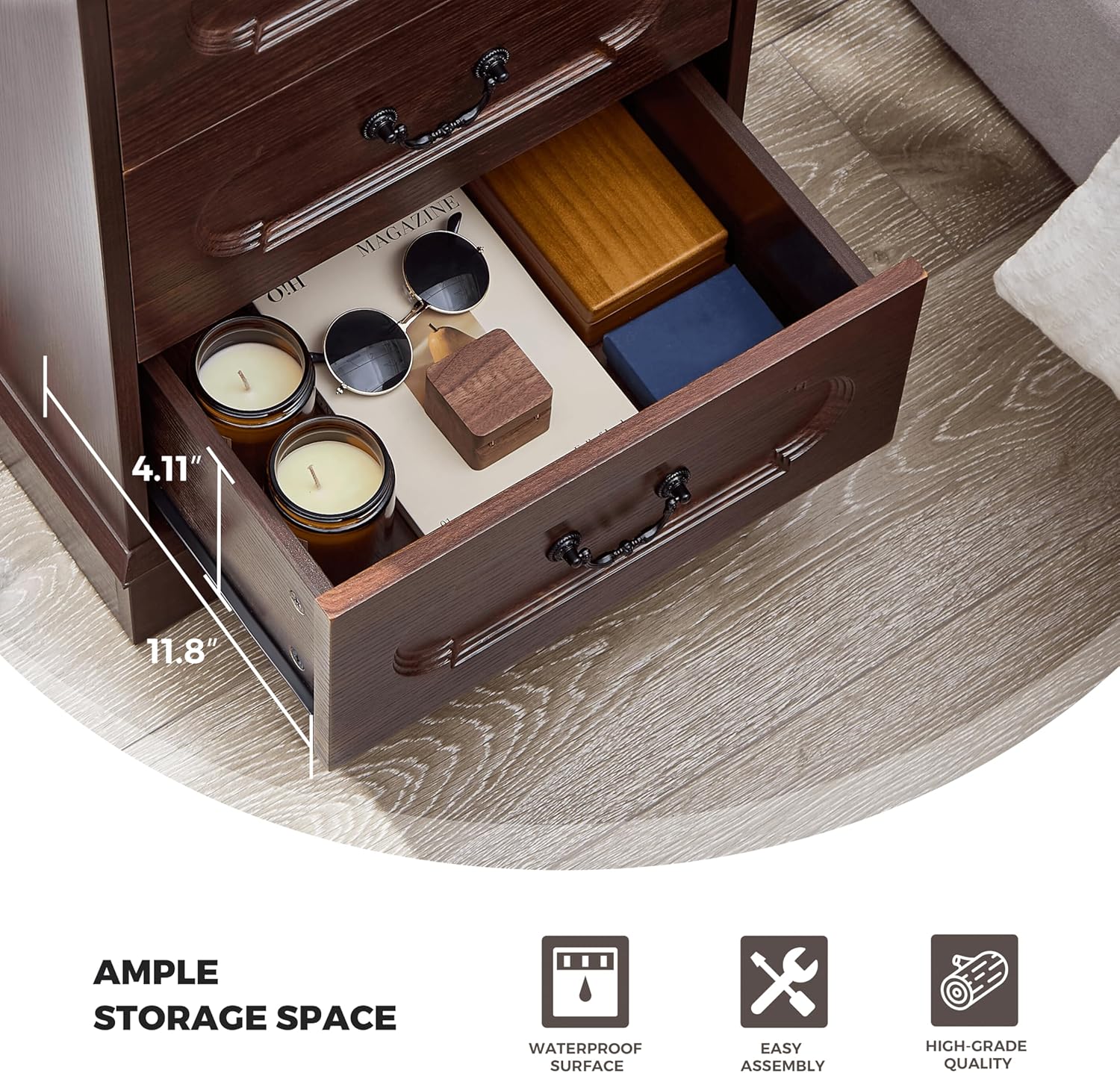 - 3 Drawers Bedroom Dresser- Dimensions: 26.2"(H) x 17.7"(W) x 15.7"(D). Dressers for bedroom features 3 wooden drawers (Size: 15.35''W x 11.8''D x 7''H) which provides ample storage space for your bedroom, kidsroom, guest room, closet, hallway or living room, keeping your clothes and essentials organized and easily accessible