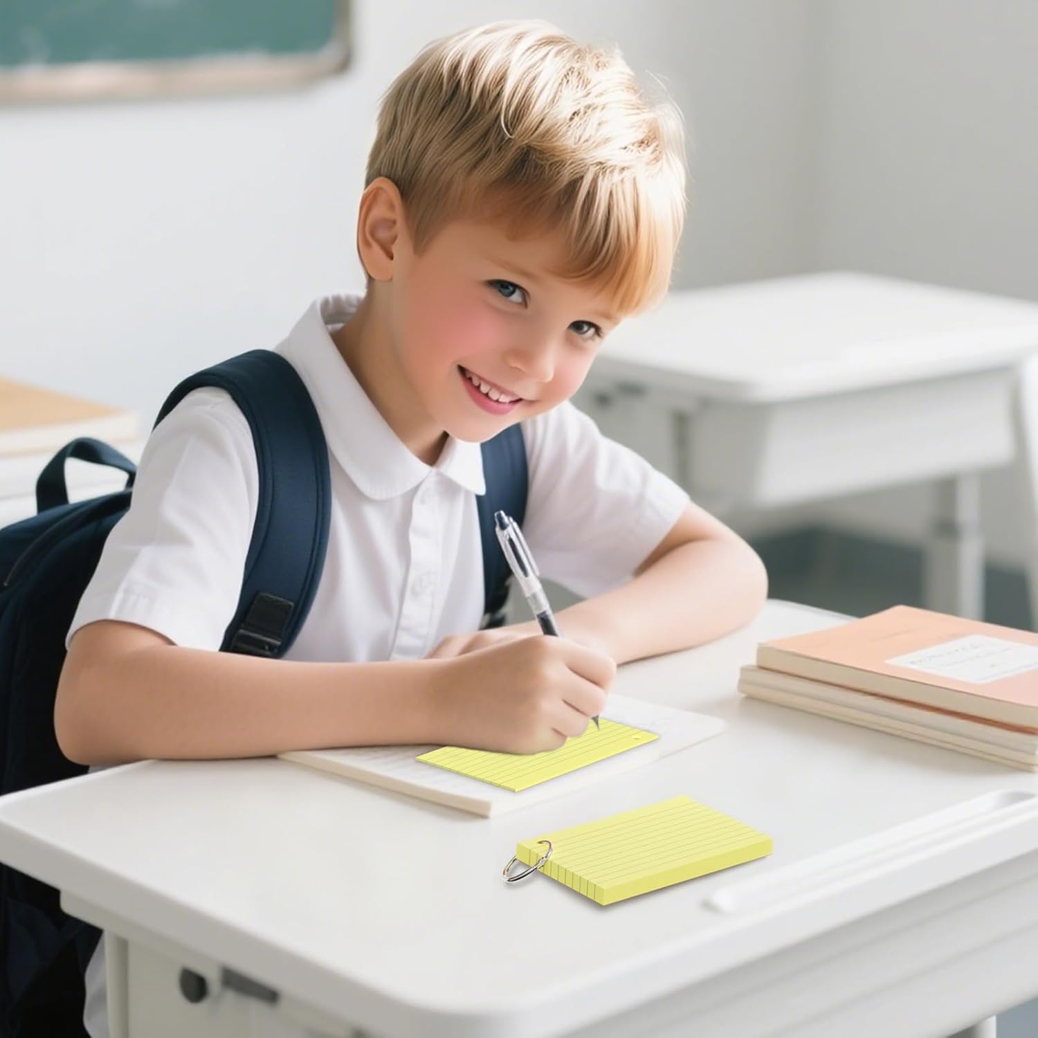 250 Count Yellow Index Cards 3x5 Inch with Key Ring, Color Flash Index Card (50 Sheets Each), Durable & Portable Note Taking for Students, Teachers, Study Note Cards for Office Home School