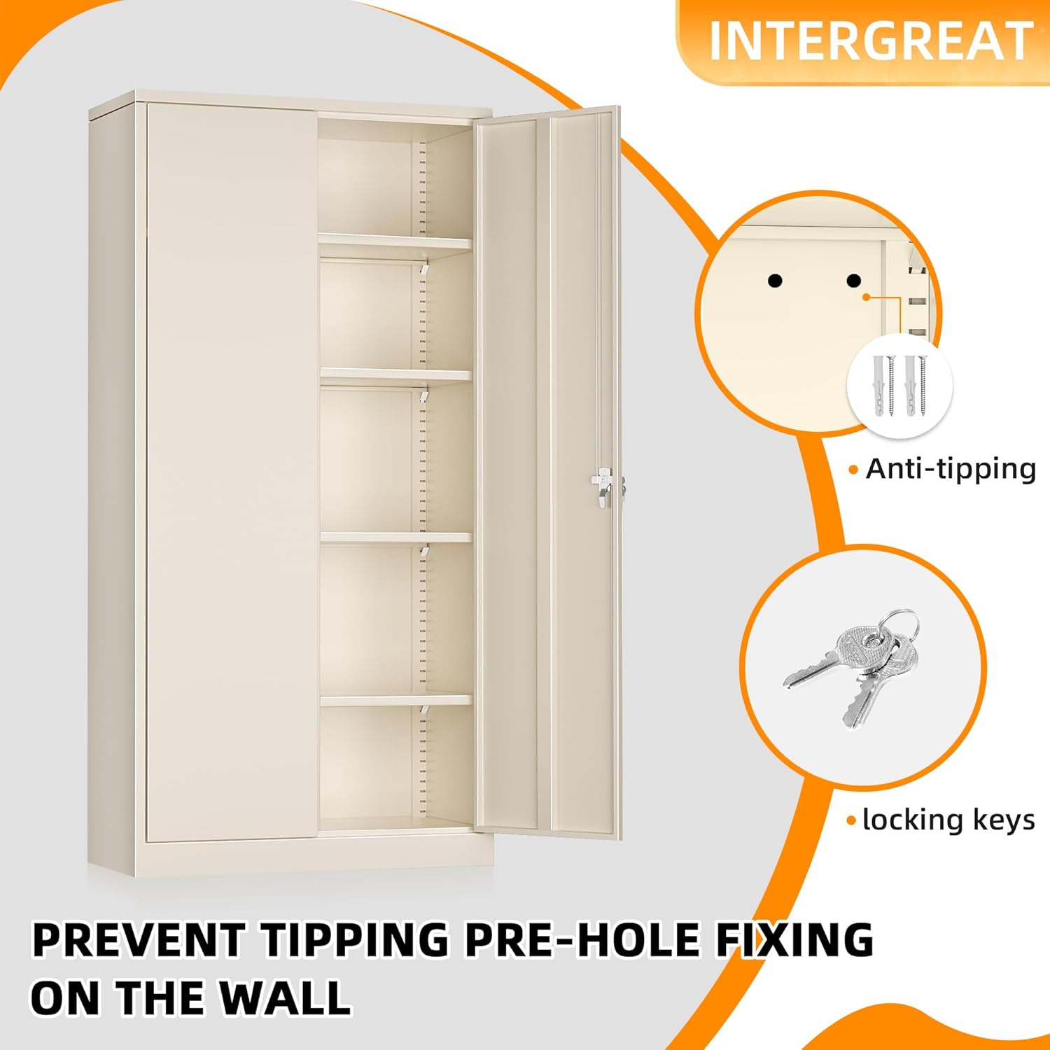 INTERGREAT Metal Storage Cabinet with Lock,72 Tall Armoire Wardrobe Closet with Doors,Cream Grey Storage Closet Cabinet with Adjustable Shelves and Removable Hanging Rods
