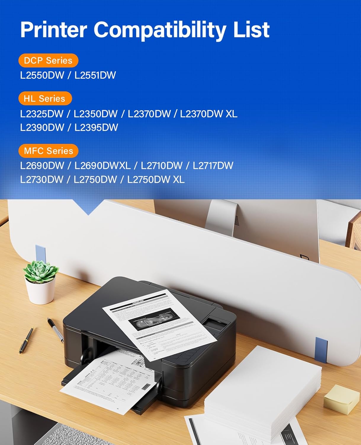 - Compatible Printer: Compatible with Brother DCP-L2550DW, DCP-L2551DW, HL-L2325DW, HL-L2350DW, HL-L2370DW, HL-L2370DW XL, HL-L2390DW, HL-L2395DW, MFC-L2690DW, MFC-L2690DWXL, MFC-L2710DW, MFC-L2717DW, MFC-L2730DW, MFC-L2750DW, MFC-L2750DW XL (Please check that your printer model matches the printer model of this toner cartridge before placing an order)