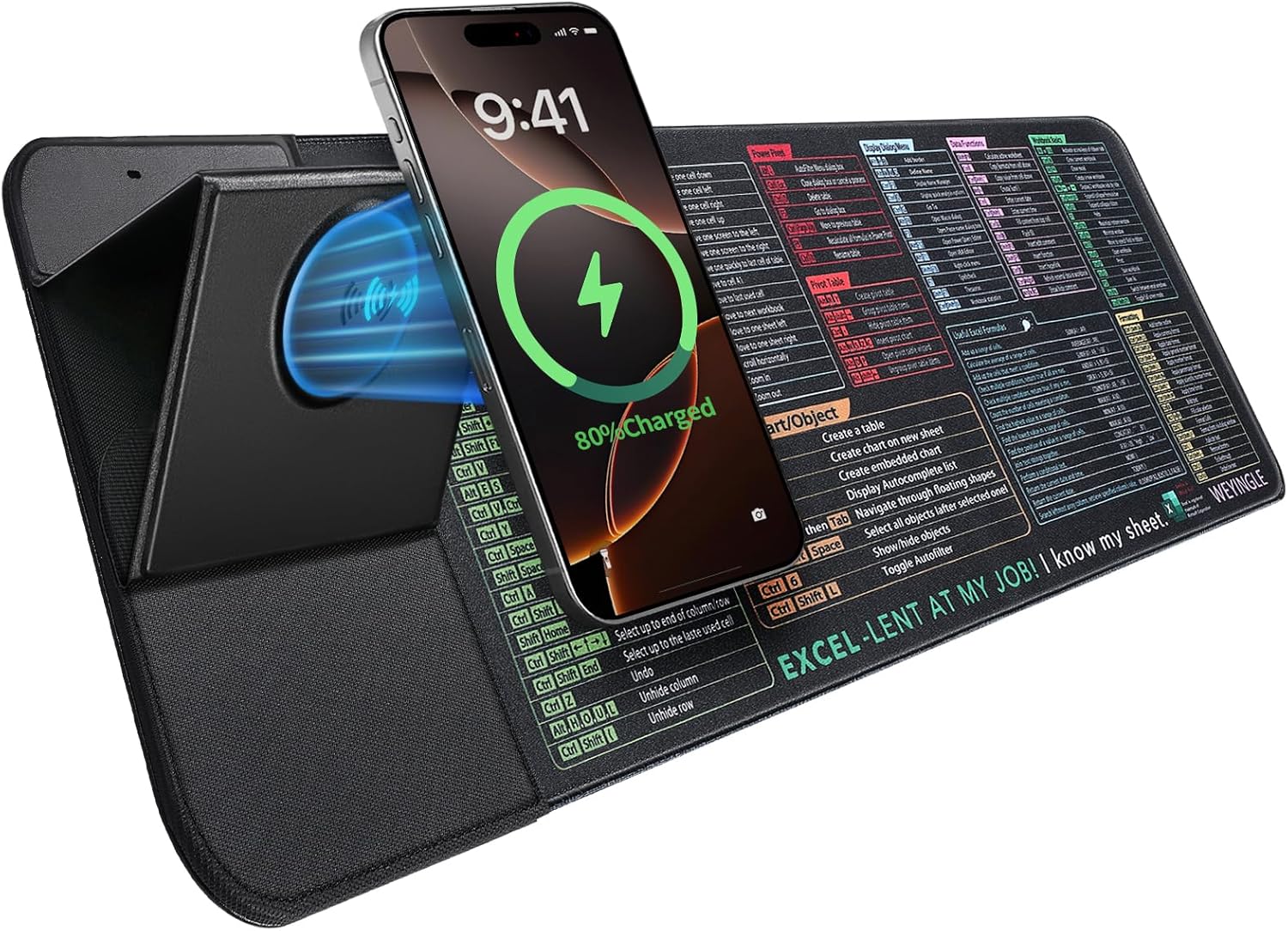 - Special Feature : Fast Charging, Magsafe Compatible, Non-slip, excel shortcuts desk mat, mouse pad with phone stand