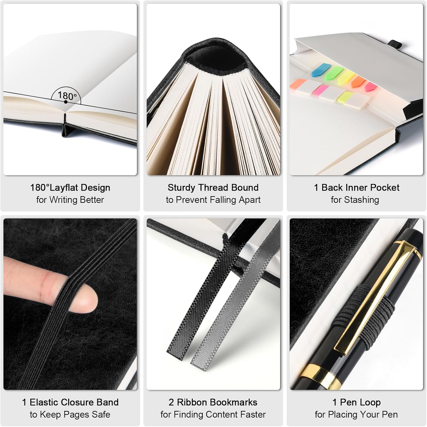- 【User-Centered Design】5 Contents Pages for logging more entries; 2 Ribbon bookmarks for quick content reference; 1 Elastic closure band for secure page keeping; 1 Pen holder to keep your pen always handy; 1 Back Inner pocket for storing notes and small items; 8 Sheets of perforated page for versatile use.