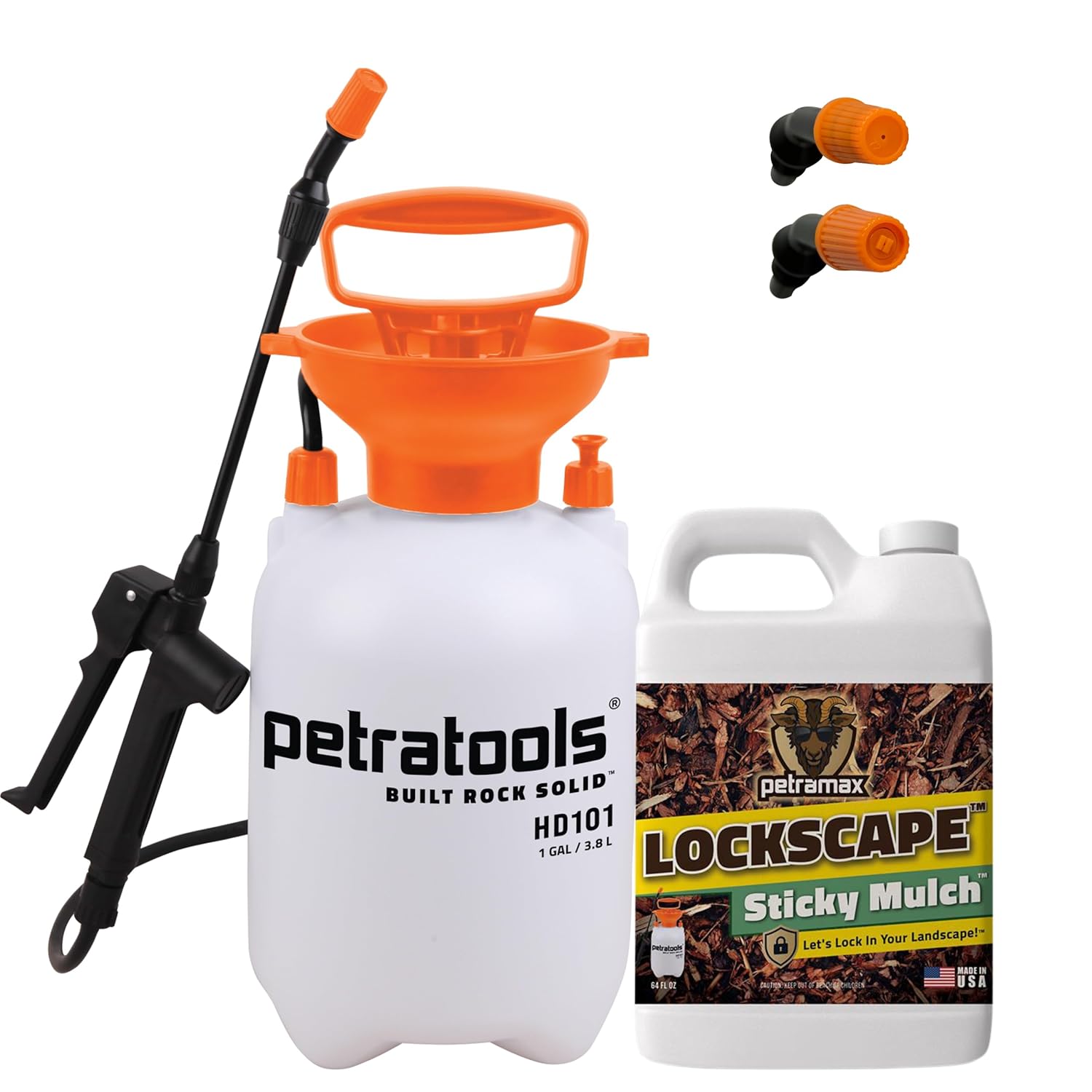 PetraMax Lockscape 64 oz Sticky Mulch Glue for Landscaping Bundle with HD101, 1 Gallon Pump Garden Sprayer for Easy Hold Landscape