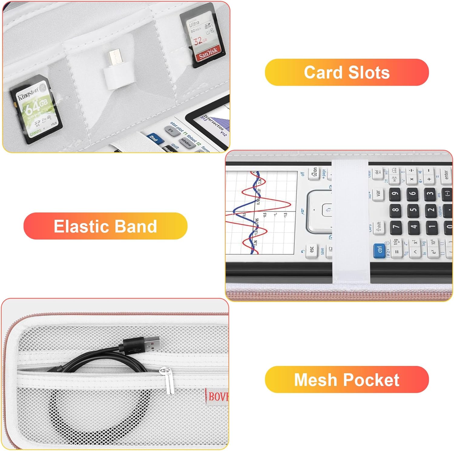 BOVKE Calculator Case for Texas Instruments TI-Nspire CX II CAS/CX II/CX CAS/CX Color Graphing Calculator and More - Extra Mesh Pocket for USB Cables and Other Accessories, White