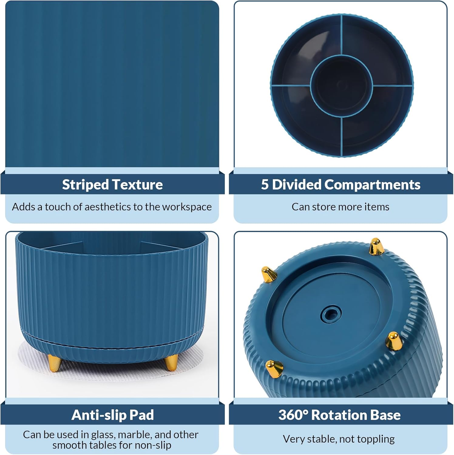 SKYDUE 360 Degree Rotating Desk Organizer, Dual-Purpose Pencil Pen Holder, Rotating Desk Pen Organizer with 5 Slots, Pencil Cup for Office, School, Home