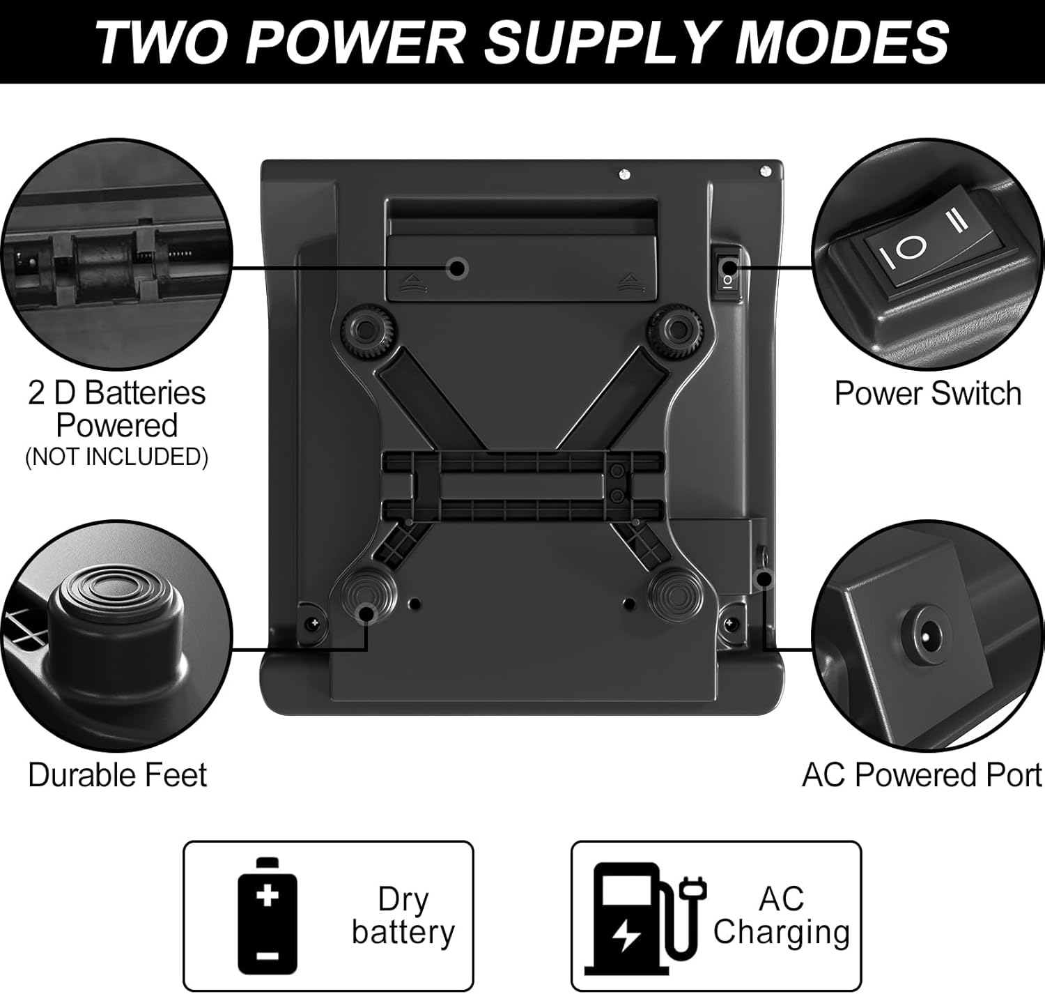 - 【Two Power Supply Modes】:AC charging powered (AC adapter included) or two D batteries powered(NOT INCLUDED!!!). You can operate this digital produce scale cordless for outdoor use, or with an AC plug for indoor use