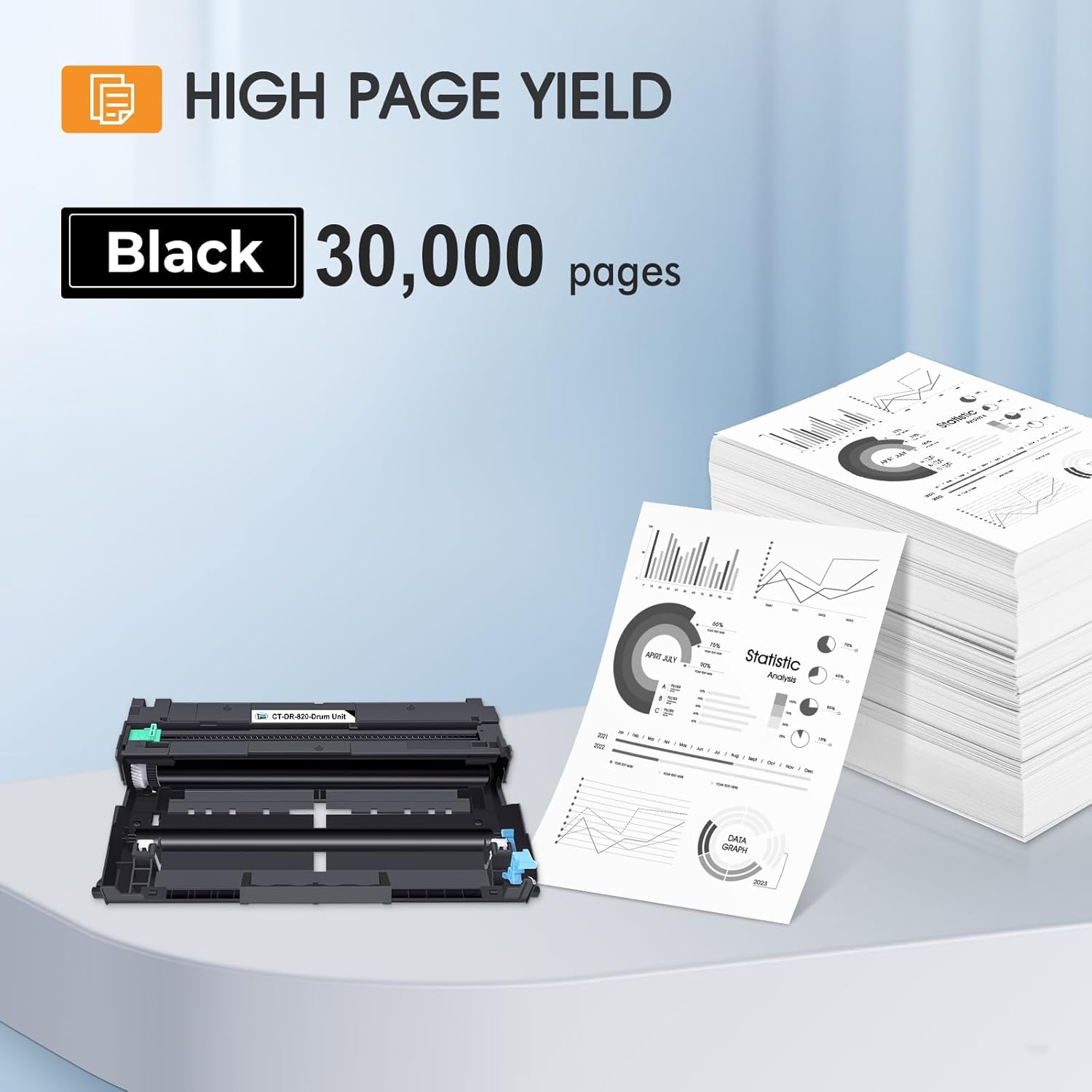 - Page Yield: Up to 30,000 pages per dr820 drum black high yield at 5% coverage (Letter/A4)