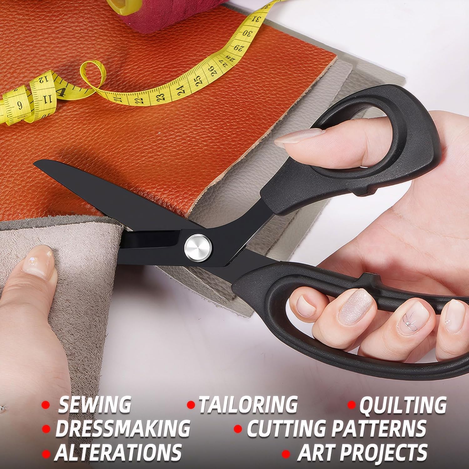 - 【Wide rang of use】 Whether it's denim, leather, tufting, fabric, light plastics, or other materials, these scissors can handle it all with ease. And Easy to cut flimsy paper, cloth, ribbon, and thread,Perfect for tailor , craft room, student or office.