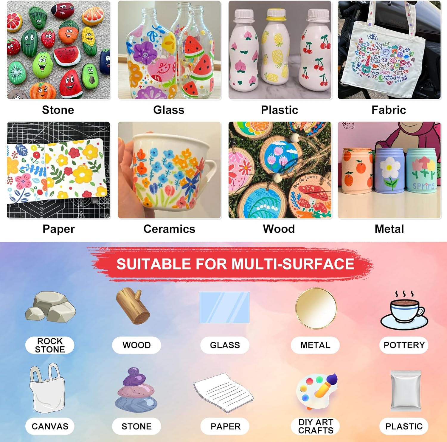 - Multi-Surface Use: This acrylic paint pen has a strong covering power, perfect for a variety of surfaces including stone, ceramic, glass, wood, fabric, metal, plastic, and more. Great for crafting, labeling, and adding creative touches to sneakers, pottery, and terracotta