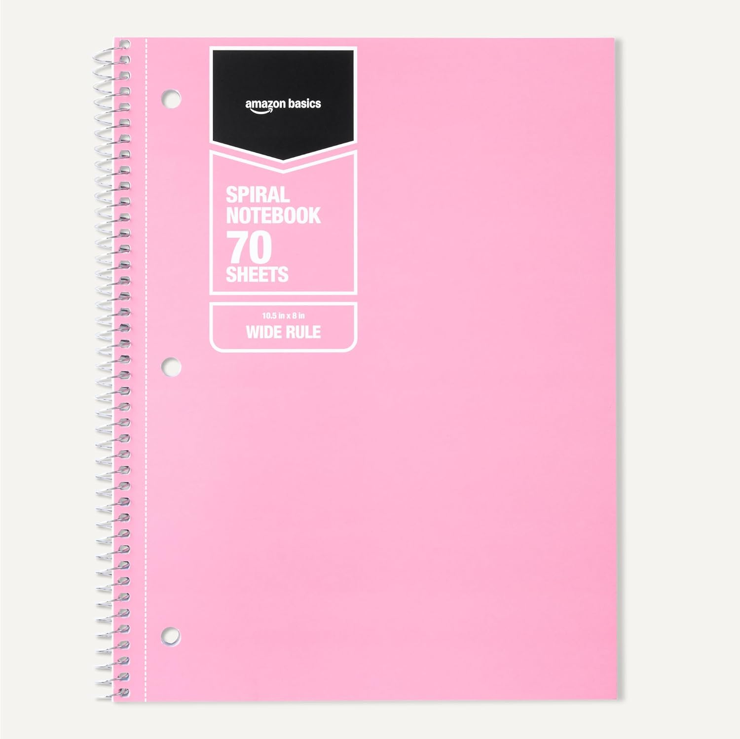 Amazon Basics Wide Ruled Spiral Notebook, 70 Sheets, 7-1/2" x 10-1/2", 3 pack, Assorted Pastel Solid Colors