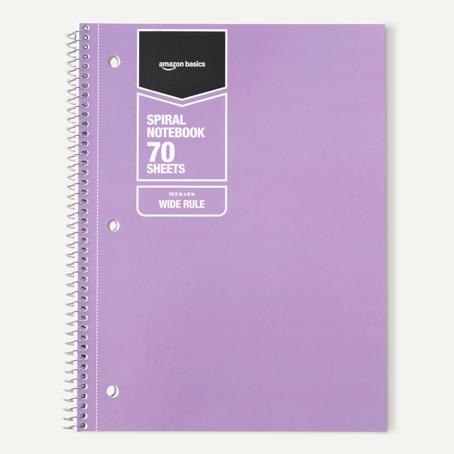 Amazon Basics Wide Ruled Spiral Notebook, 70 Sheets, 8" x 10-1/2", 5 pack, Assorted Pastel Solid Colors