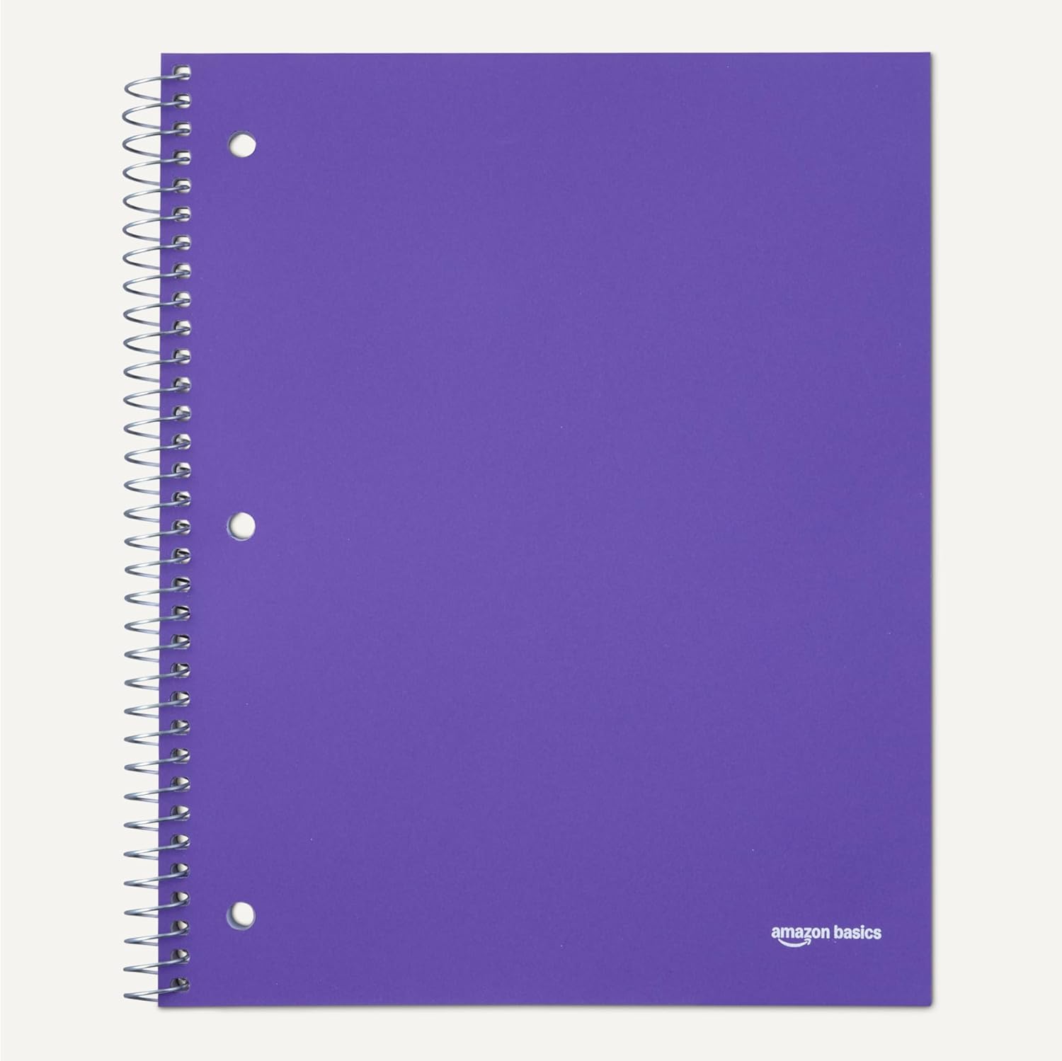 Amazon Basics Wide Ruled Spiral Notebook, Poly Cover, 100 Sheets, 8" x 10-1/2", Radiant Orchid, 3 pack