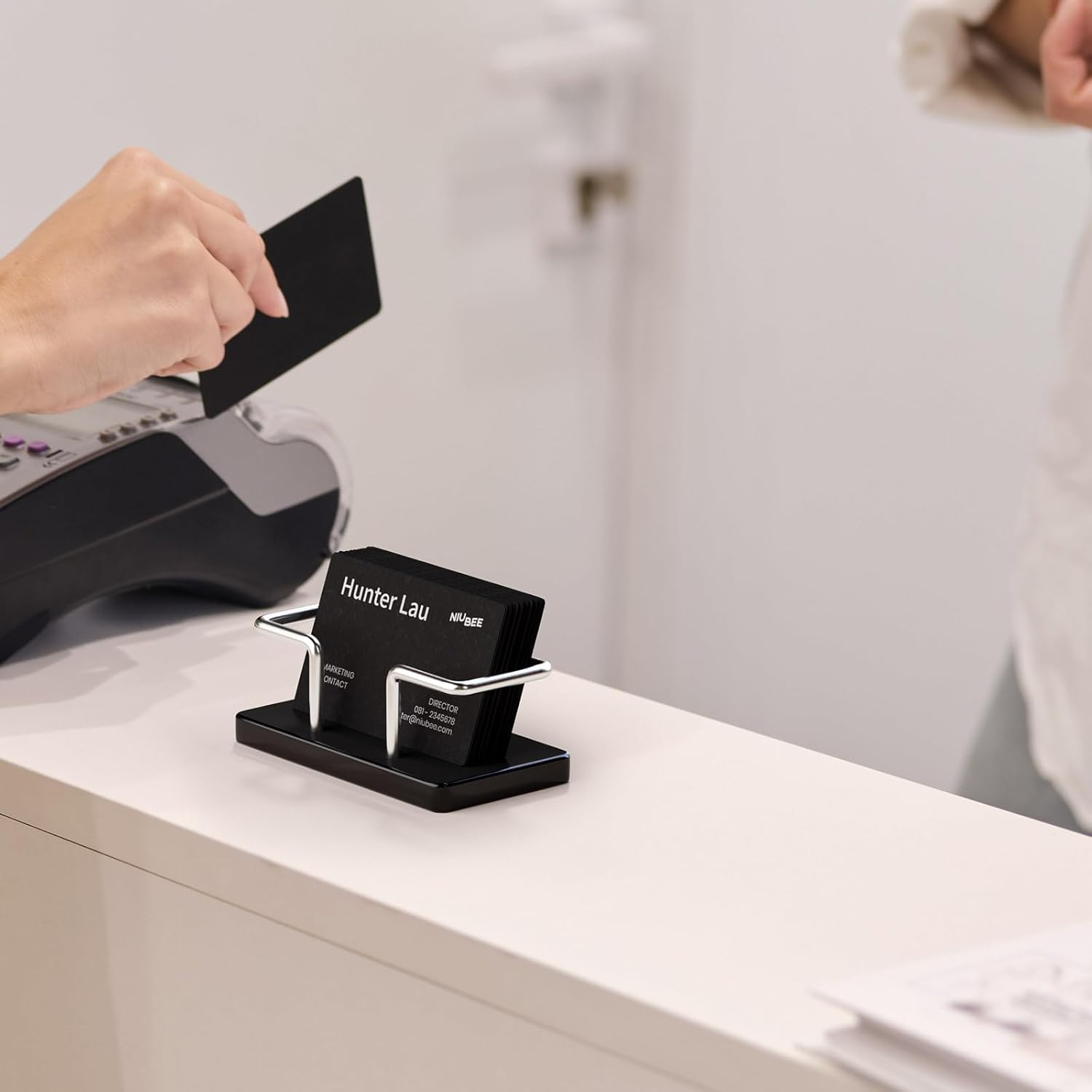 - Fits Various Settings - Available in classic black or modern silver, this holder blends effortlessly into offices, trade shows, retail counters, and studios. Its refined look enhances professionalism and fits seamlessly into any setting.Designed to complement your personal brand, it enhances your credibility and leaves a lasting impression.