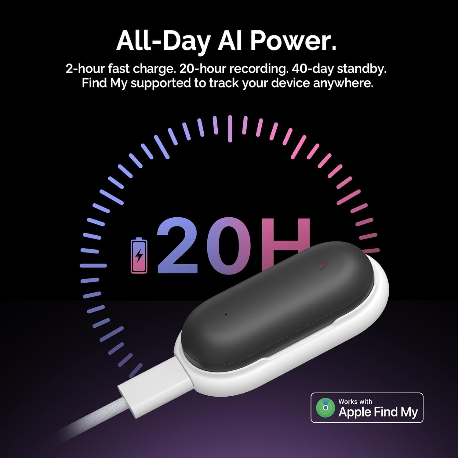 - EVERYTHING YOU NEED IS INCLUDED: 1 PLAUD NotePin Voice Recorder, 1 Magnetic Clip, 1 Charging Dock, and 1 USB-C Charging Cable. All PLAUD users will enjoy a complimentary 300 transcription mins/month. Additionally, you can configure Wi-Fi for automatic file uploads to PPC (while charging) and easily locate your NotePin using Apple’s Find My app.