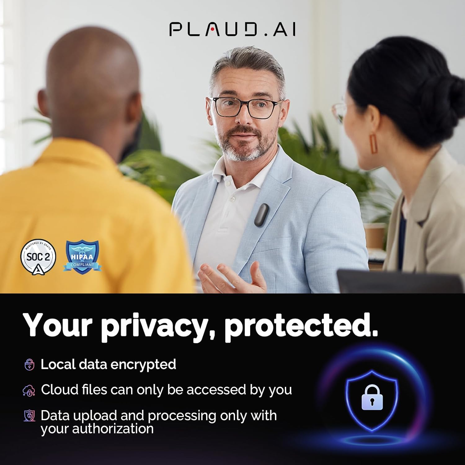 - PRIVACY COMES FIRST: PLAUD NotePin prioritizes your privacy with encrypted local data and cloud storage that’s exclusively yours. Data is processed only with your authorization. Enjoy unlimited free cloud storage with top-tier encryption and security to protect your information.