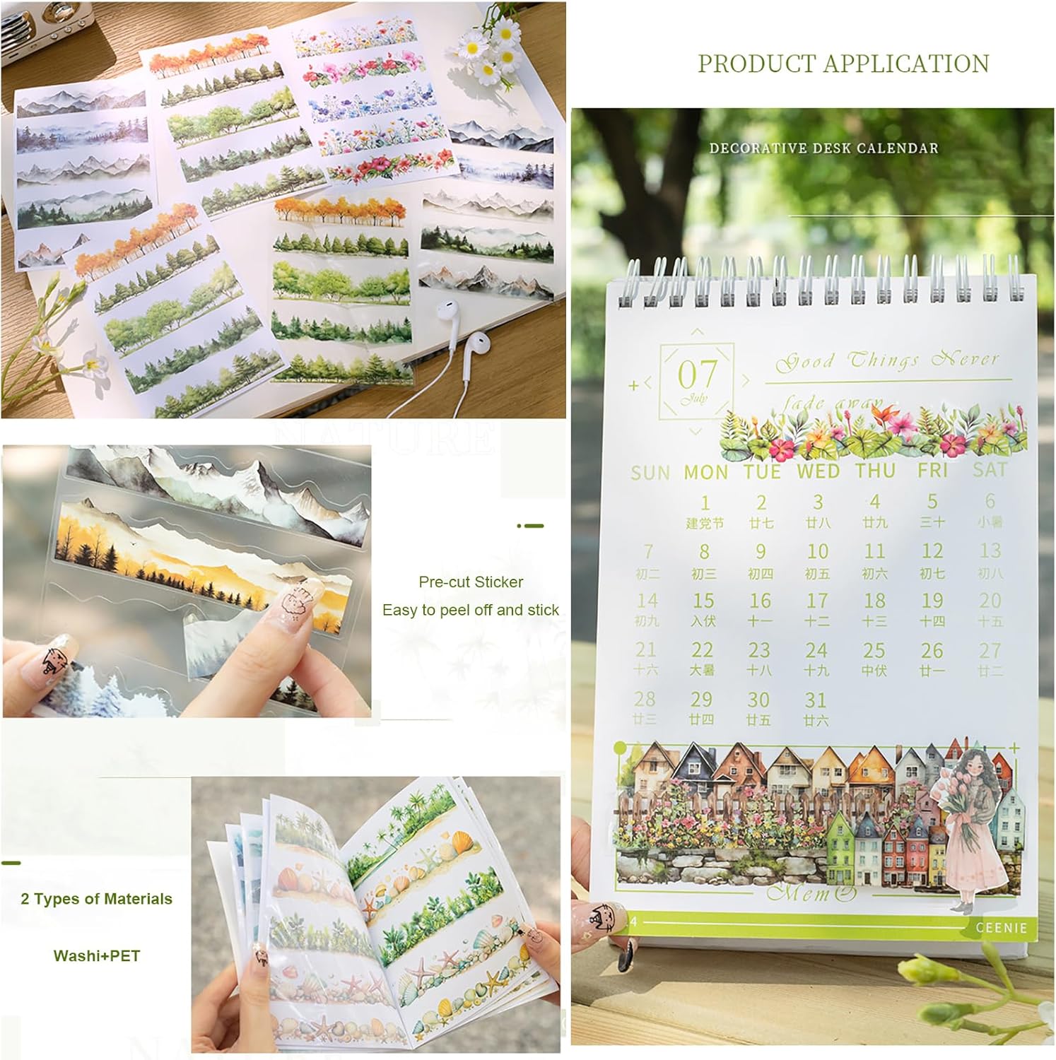 - [Material & Processing]: These nature theme stickers themselves are made of clear PET paper and washi Paper - 10sheets PET paper and 10sheets washi paper, PET stickers transparent and stable and washi paper stickers reusable. They are well made, the motifs are very lovely