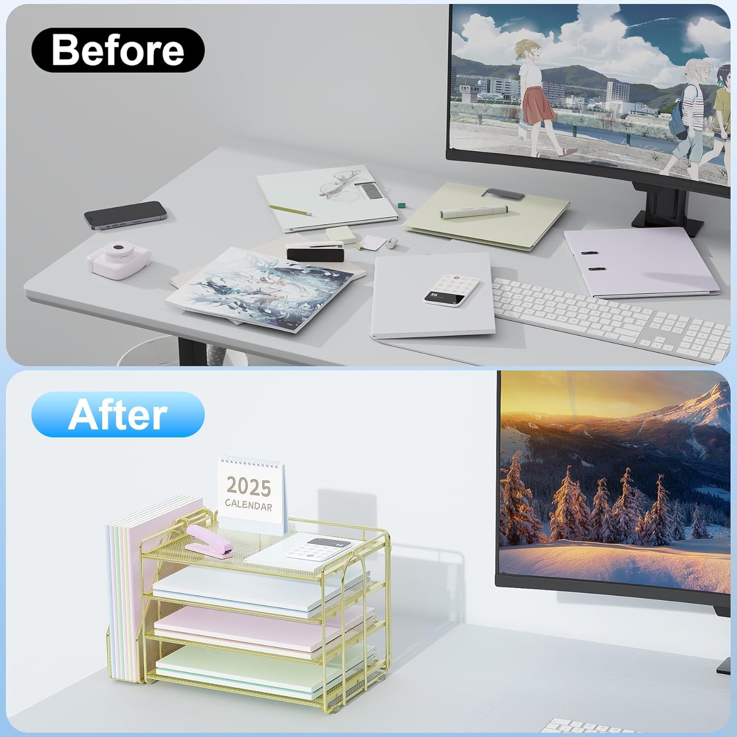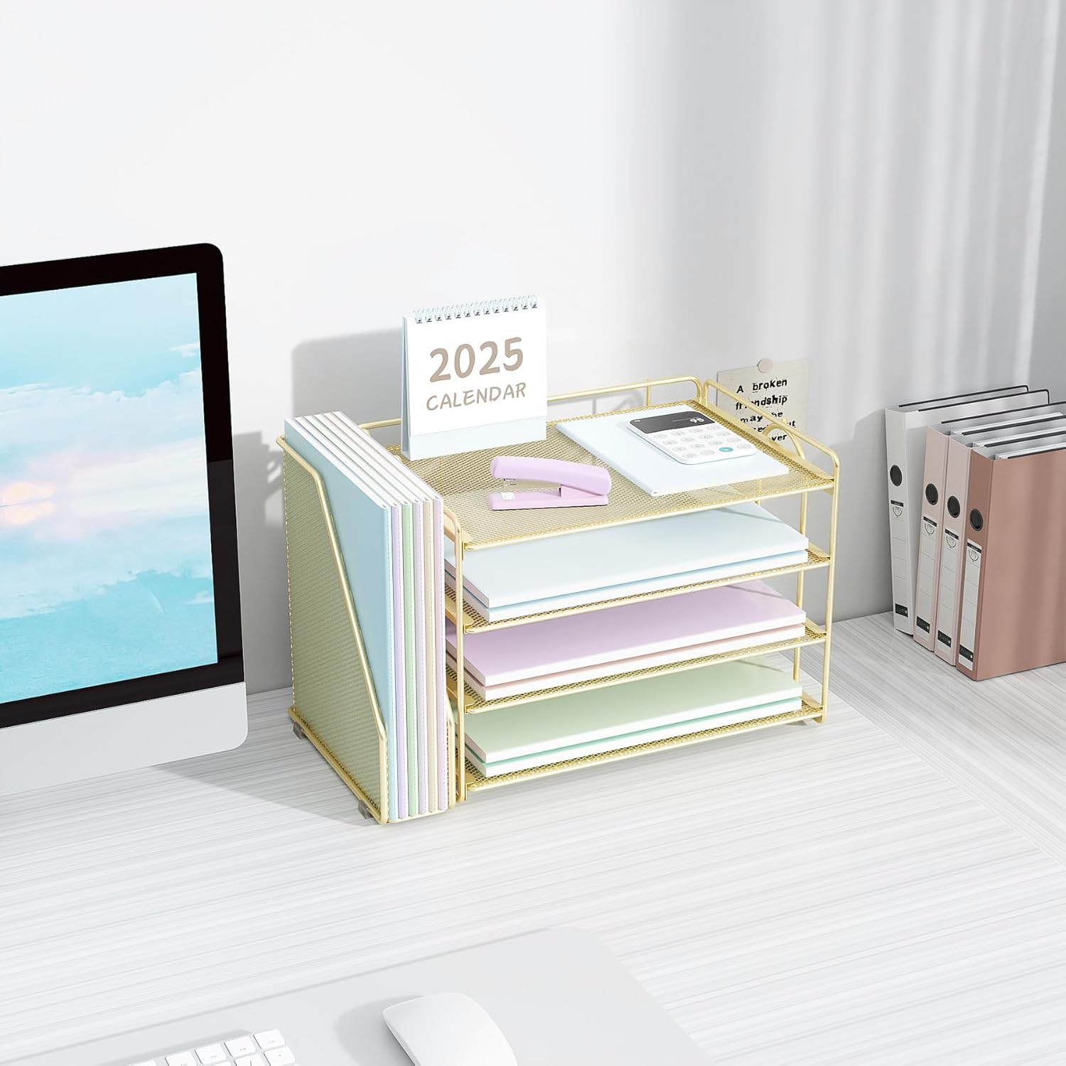 - ā¶ Save desktop space: The office desk organizer provides you with 4 paper trays and a vertical file organizer, providing ample space for your desktop and helping to keep your desktop organized and free of clutter.