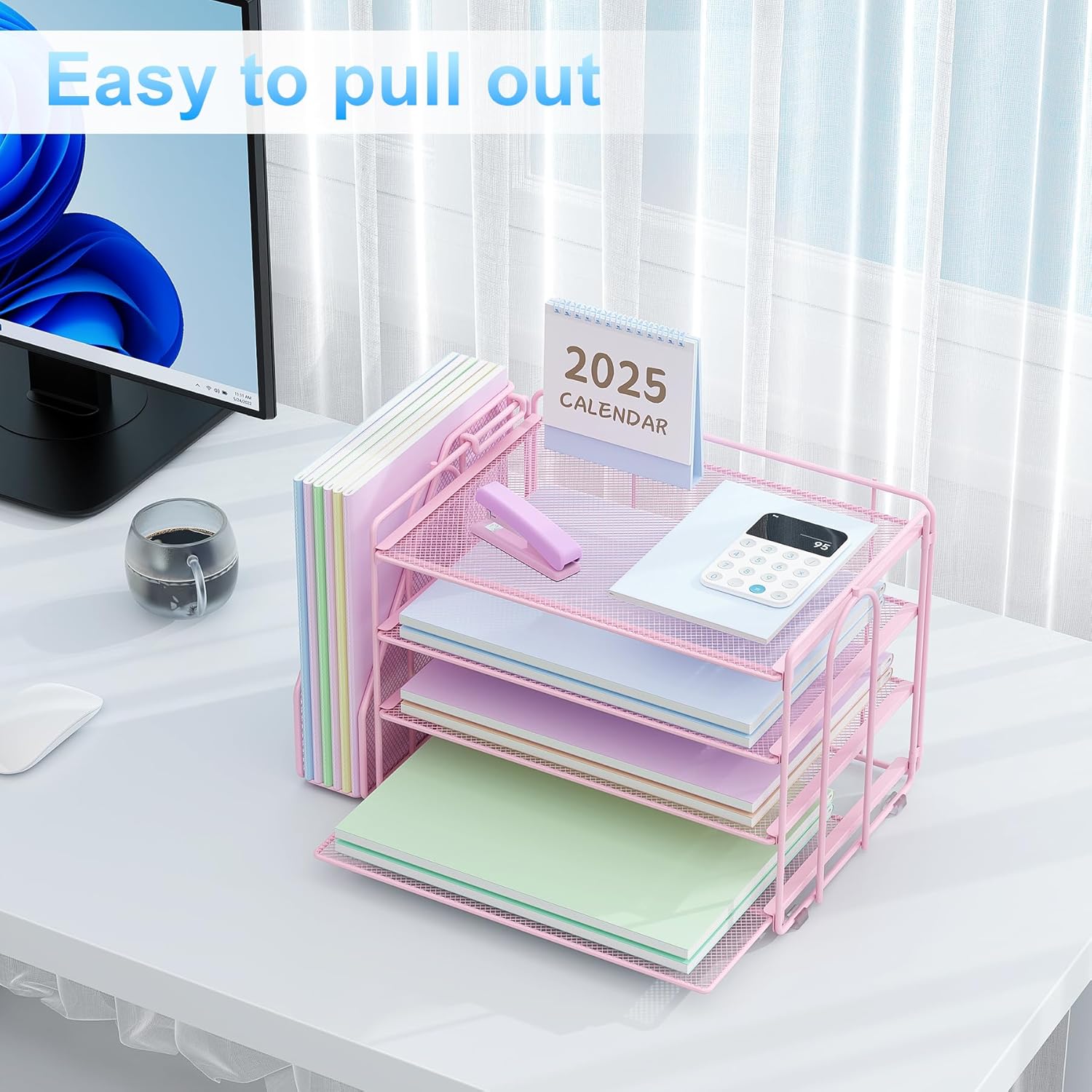 - ā¶ Save desktop space: The office desk organizer provides you with 4 paper trays and a vertical file organizer, providing ample space for your desktop and helping to keep your desktop organized and free of clutter.