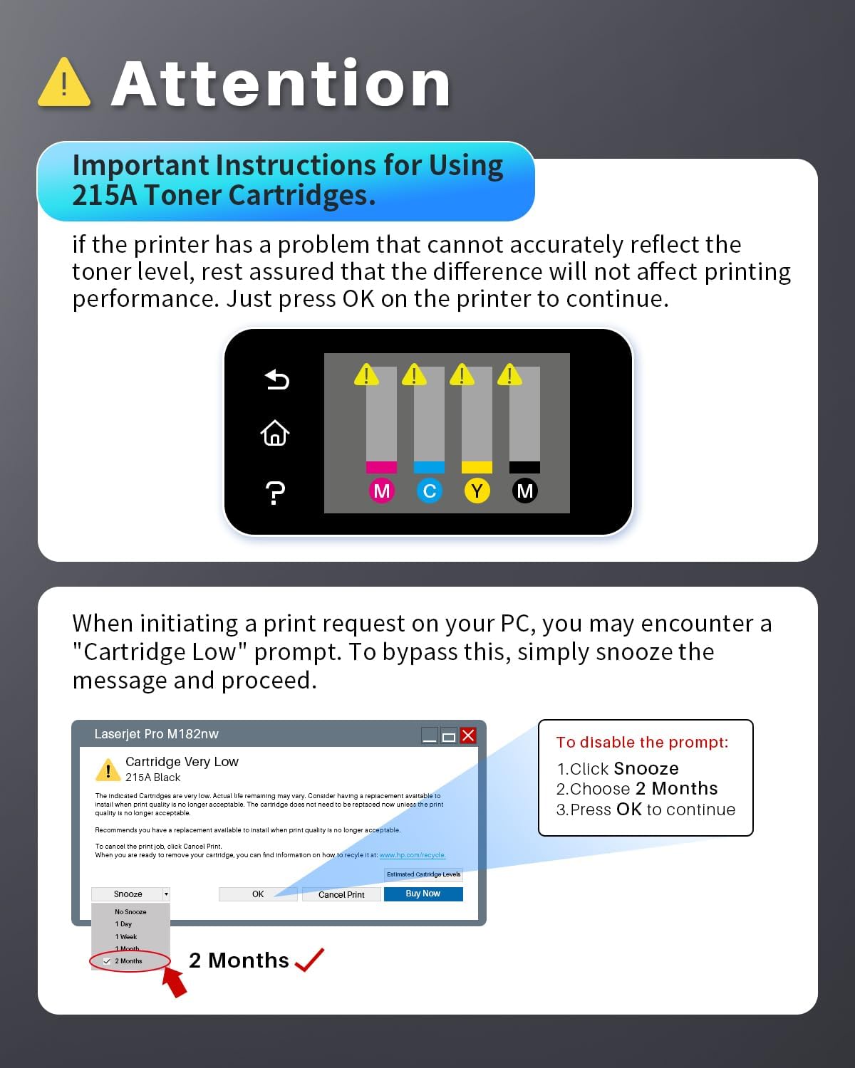 - 5. Premium Print Quality: These INK4U 215A toner cartridges ensure that you print clear text and colorful photos for your work and life records.