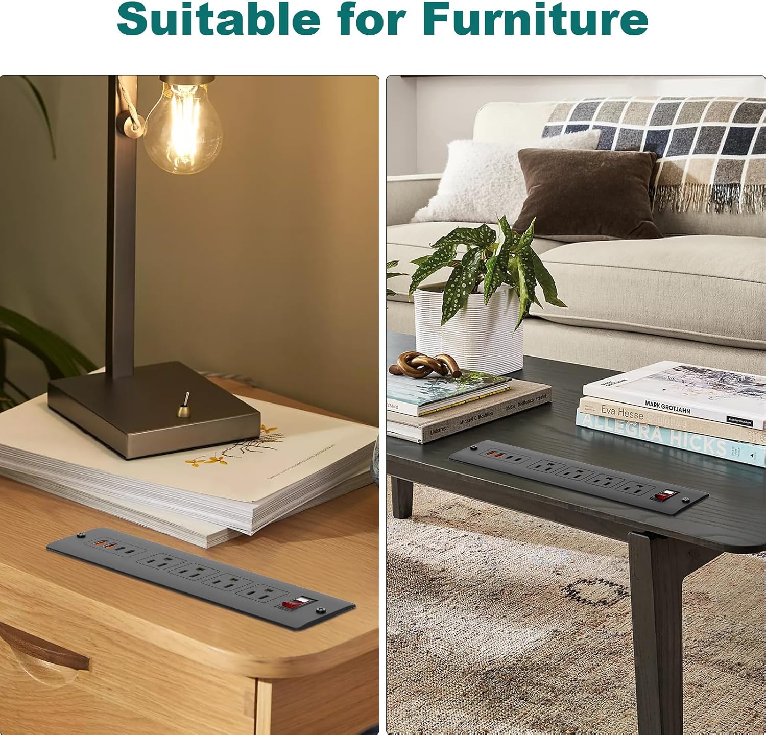 - 【Furniture Hidden Charging Station】Ideal for furniture integration, this mountable power strip fits neatly into drawers, side tables, or end tables. Use it as a drawer plug outlet or RV furniture outlet, offering convenient access to power without clutter.