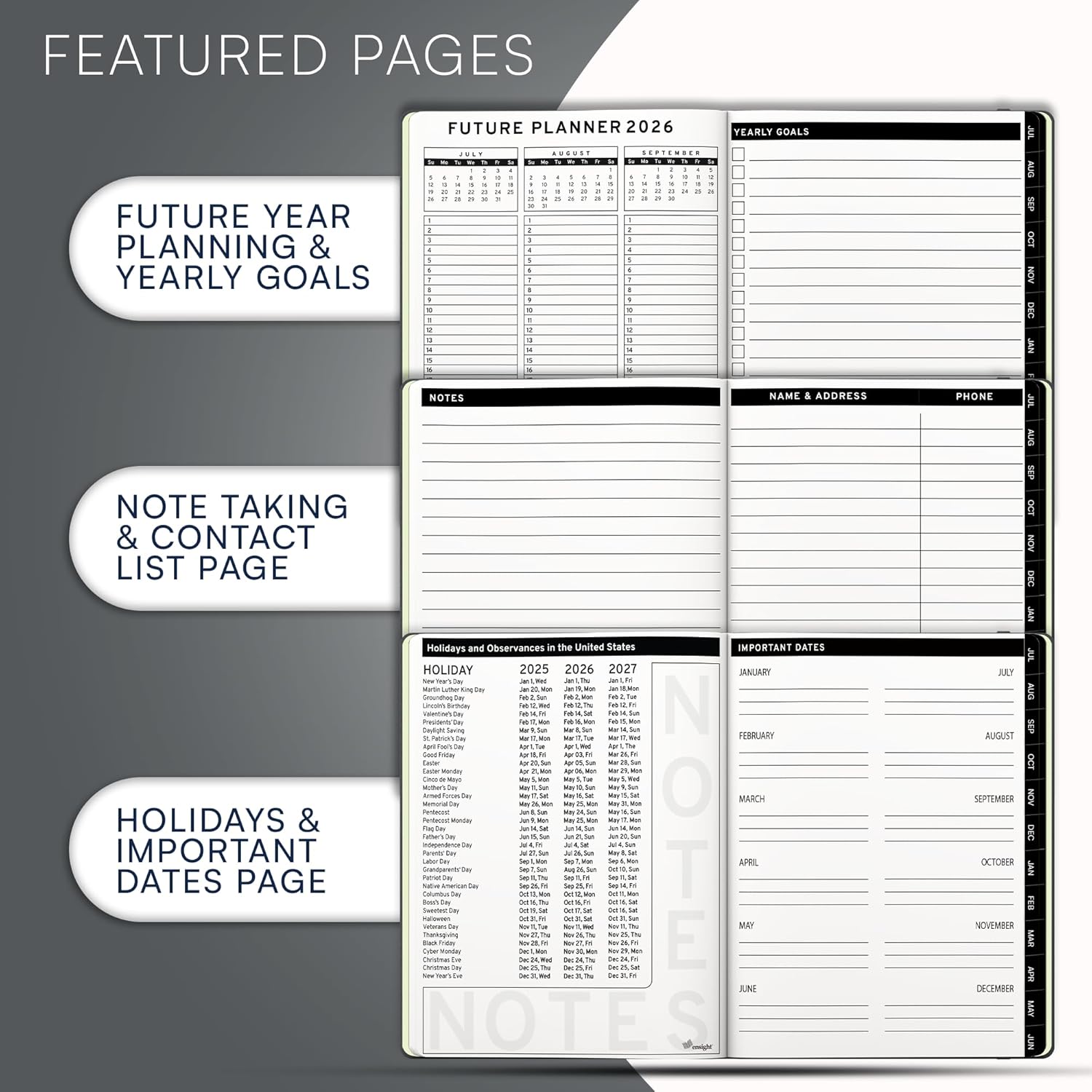 Ensight 2025-2026 HARDCOVER Leather Planner Weekly & Monthly - 8.5x11 Inches - Academic Planner Business Personal or Student - Pen Holder, Thick Paper, July 2025 - June 2026 (Grey)
