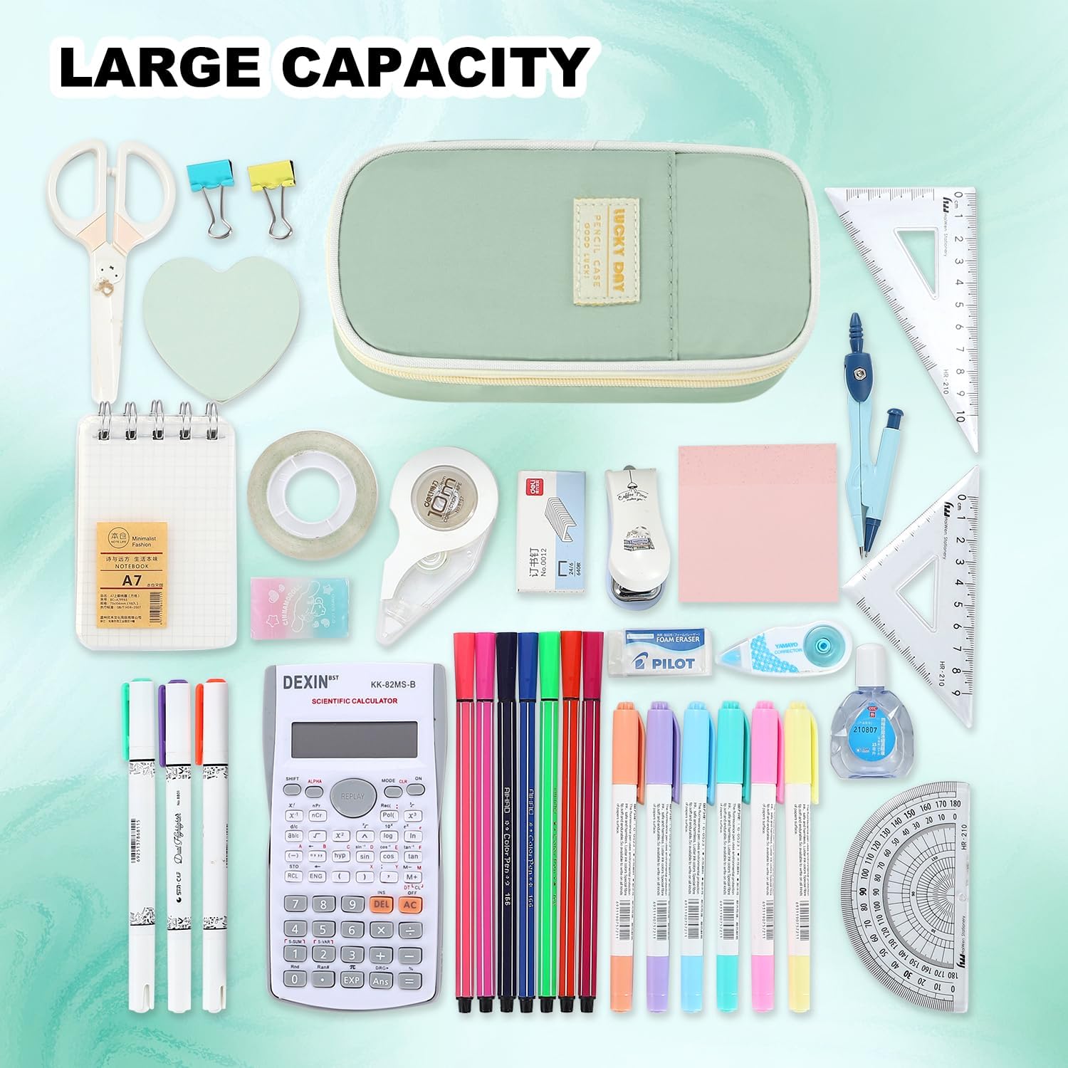 - Large Pencil Case - The dimensions of this pencil case are 9.05 x 4.35 x 3.55 inches, it can hold up to 70-90 pens/pencils, 20cm rulers, erasers, calculators, scissors, and other learning tools.