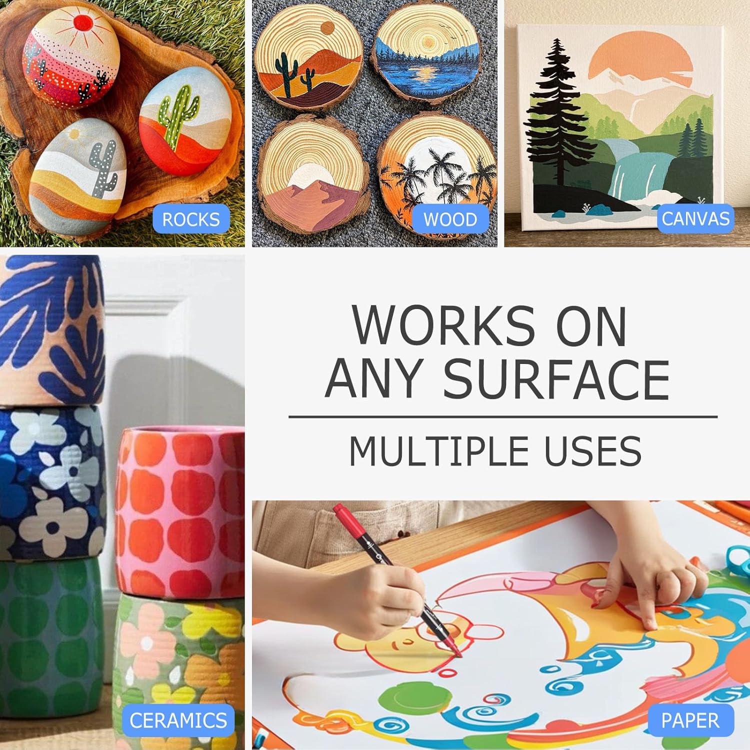 - Dual Tip Acrylic Markers: Each paint pen come with a brush tip and a round dot tip. With the unique and convenient dual tip design, these paint markers can meet various needs. Suitable for both beginners and professionals to use at home, office or outdoors