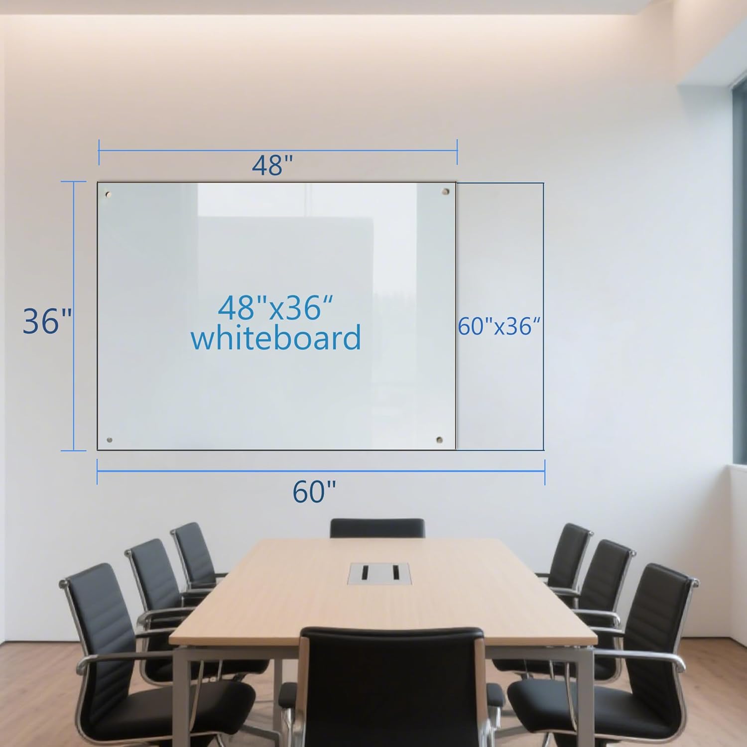 - TEMPERED GLASS WHITEBOARD: Our 60" x 36" dry erase board is made of ultra-high strength tempered glass. So that can resists scratches and dents.Extended service life