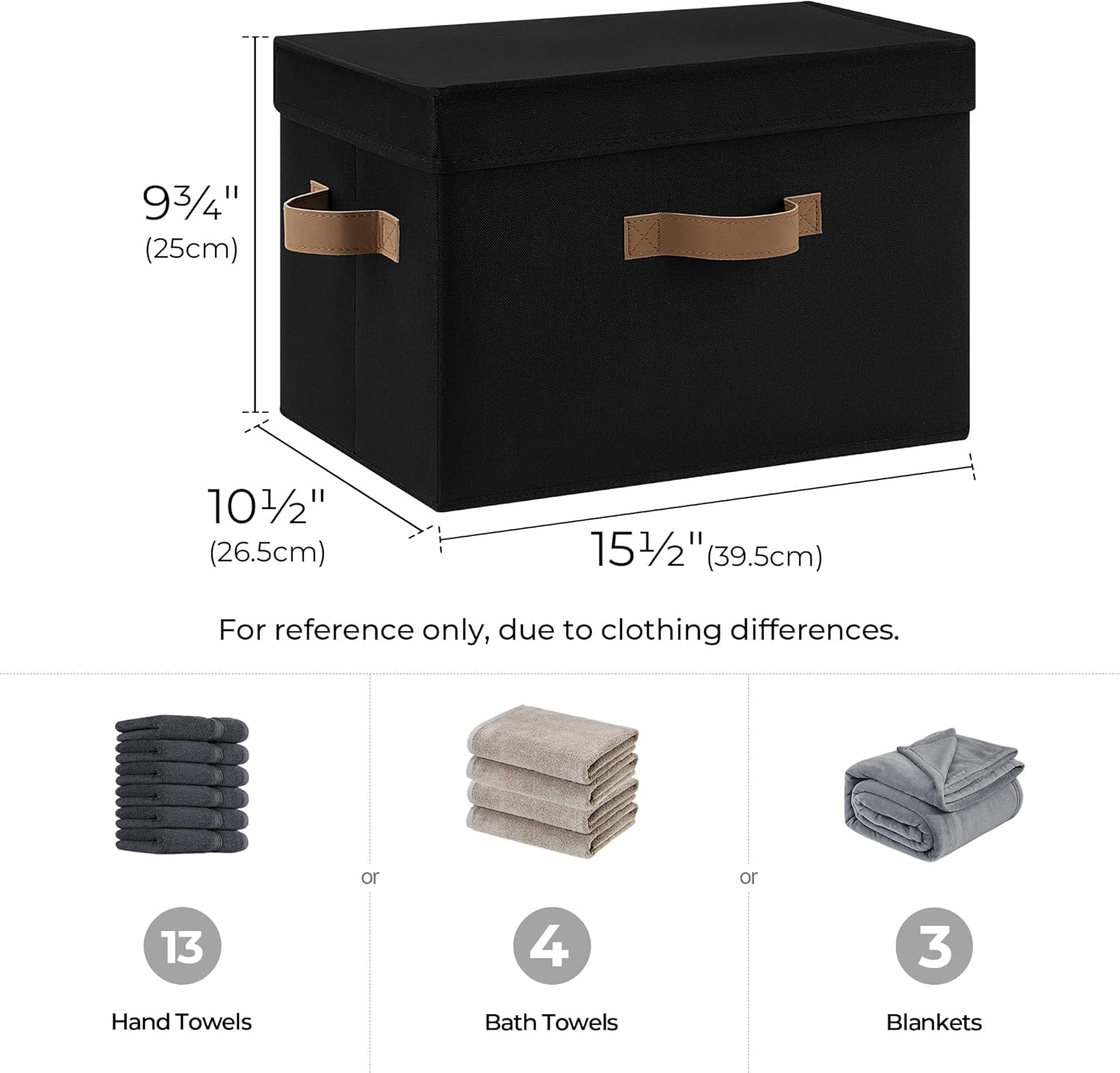 StorageWorks Fabric Storage Bins with Lid, Decorative Storage Boxes for Shelves, Stackable Closet Organizer Basket with Handles, Large, Black, 2-Pack