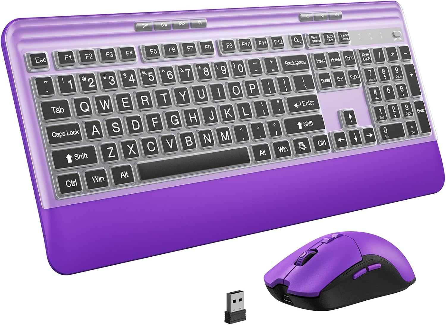 Silent Wireless Keyboard and Mouse Combo - Keyboard with Large Print Cover, 2.4GHz Full-Sized Ergonomic Keyboard with Wrist Rest and Mouse for Laptop, PC, Notebook, Desktop