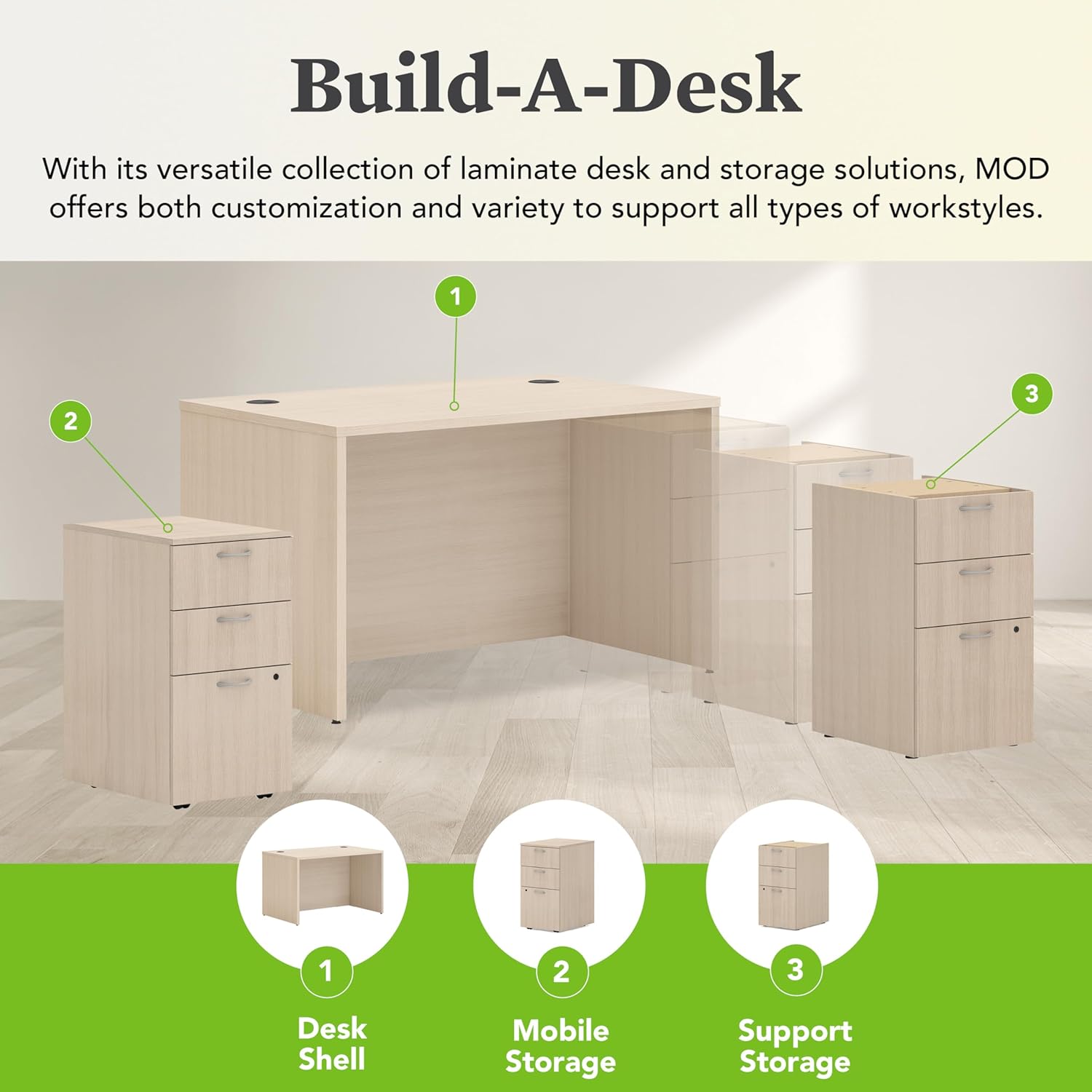 - QUICK & EASY ASSEMBLY: Home office desk table ships in one box and assembles in no-time with a simple metal-to-metal fastening system for precise fit and unsurpassed durability - Compatible with MOD Hanging or Support Pedestals for smart storage options